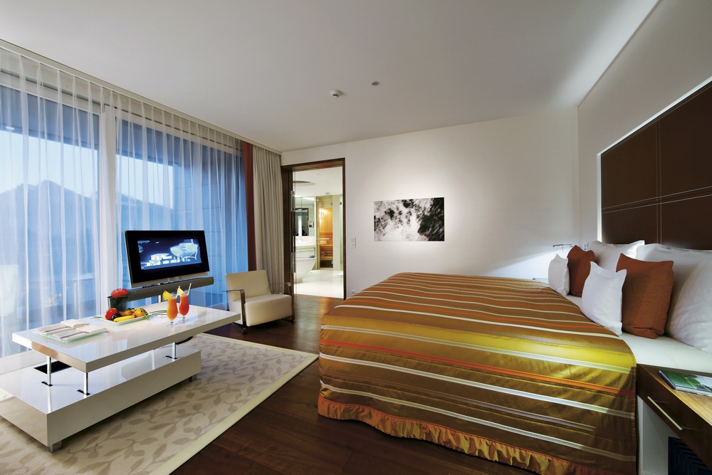 У готелі є комфортабельні номери різних категорій, включаючи Junior Suites, Corner Junior Suites, Suites, Royal Suite, Spa Lofts, Spa Lofts Superior, Spa Lofts Deluxe, Spa Suites та Penthouse Suite. Номер інтернів - це елегантний клас, розкидані великими тканинами і декорованими, балкон має казковий вигляд Альп і живописний парк готелю.