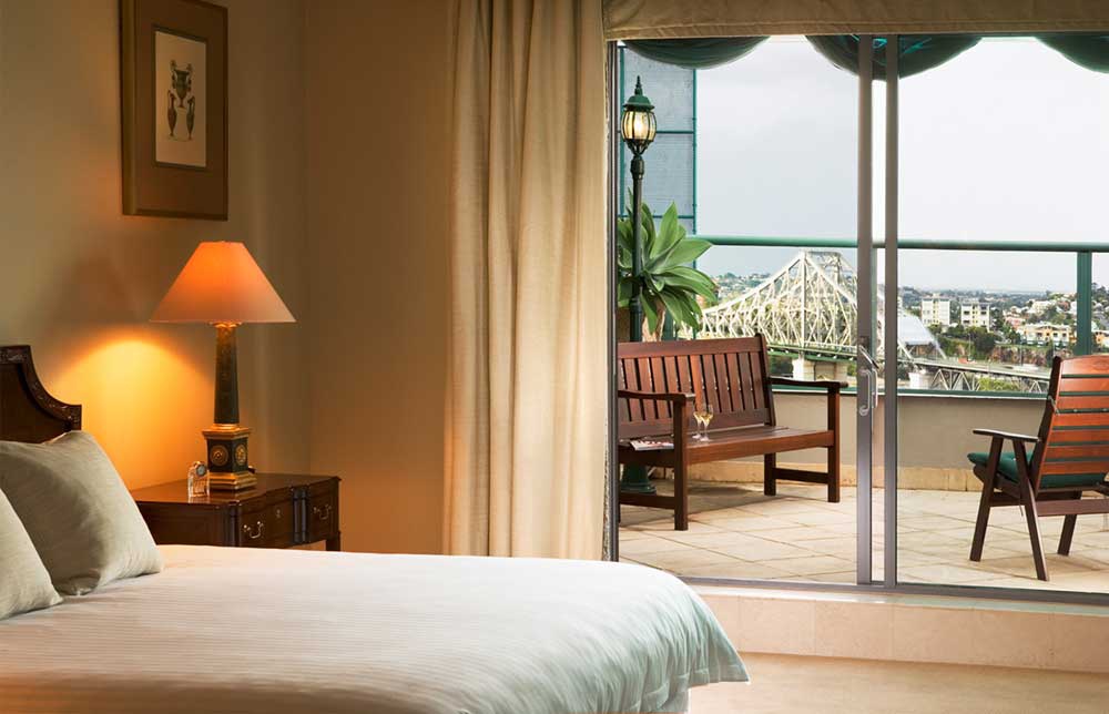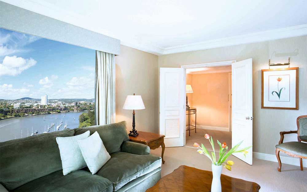 Покращений номер складається з спальні з вітальною зоною, санвузлом, і він йде на річку Брісбена.