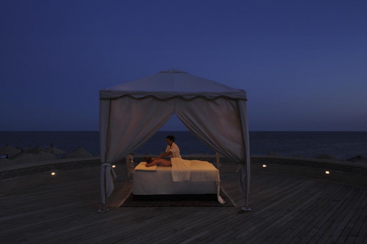 Королівська вілла: 307 кв.м1 часй Розкішна двоповерхова вілла, розташована на пляжі, включає в себе на першому поверсі: вітальня, робоча зона, їдальня, кухня з окремим входом, спальня з двома ліжками близнюка, санвузол, гостьовий туалет, веранда (114 м)1 час() З обідньою зоною, садом і басейнною терасою, на другому поверсі: вітальня з робочою зоною, спальня з двоспальним ліжком king-size (54 м)1 часгостьова спальня (47 м)1 часДвох санвузлів (один з джакузі), шафа. Більше в номері, факс, чай і кавовий комплект, косметика L'Occitane. Гостям пропонують відпочити з улюбленим напоєм.