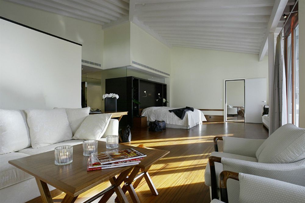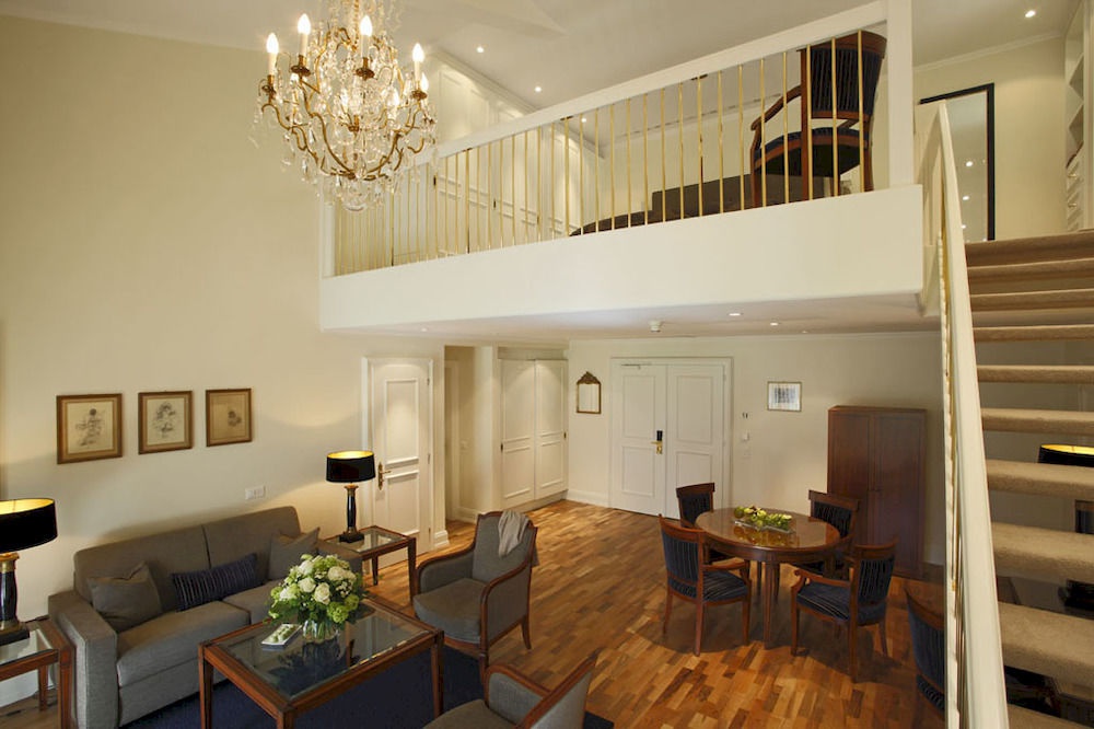 Полулюкс Покращений: 70 м2, дворівневий номер з видом Interlaken складається з спальні, вітальні, ванної кімнати.
