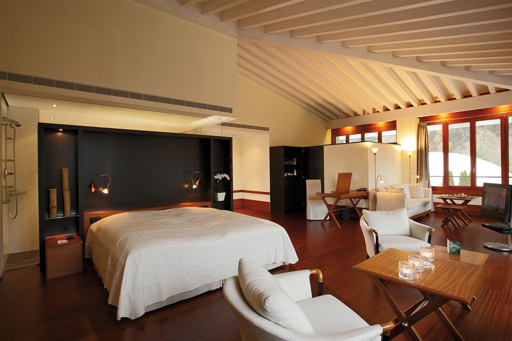 Полулюкс: 56 м2, з видом на сади і село, з прямим доступом до Спа. З спальні з вітальні, санвузлом. Деякі номери мають балкон.