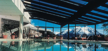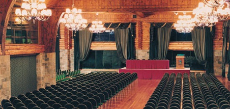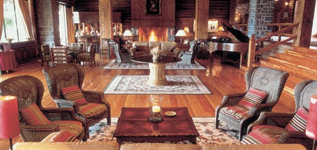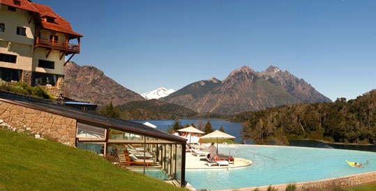 Llao Llao Hotel " Нагадуємо про лісові резиденції в Онтаріо. Кам'яні печі та каміни, масивні дерев'яні блоки та меблеві елементи, килими, барани та рулонні дахи, все нагадують традиції великого поета Сполучених Штатів Лонгфелло.