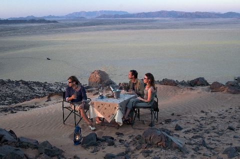 Під час сафарі та екскурсії пікніки проводяться в природі з коктейлями або винами та легкими закусками. Вечеря з 3-х страв, інтернаціональної кухні та місцевих намібських страв, відмінні морські коктейлі.