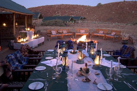 Під час сафарі та екскурсії пікніки проводяться в природі з коктейлями або винами та легкими закусками. Вечеря з 3-х страв, інтернаціональної кухні та місцевих намібських страв, відмінні морські коктейлі.