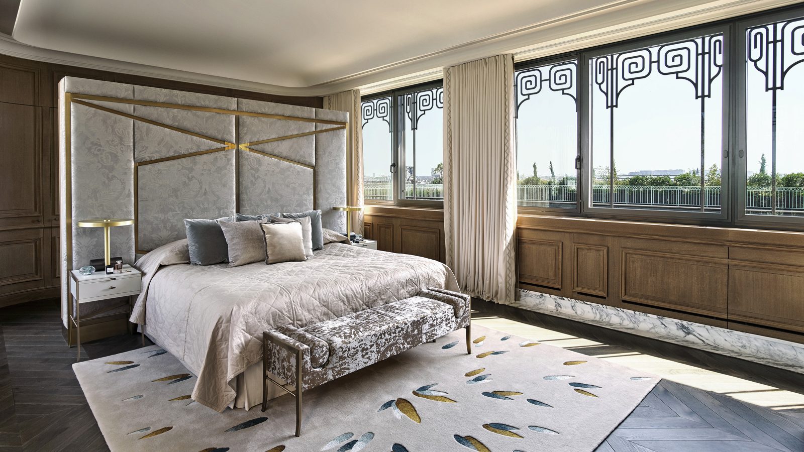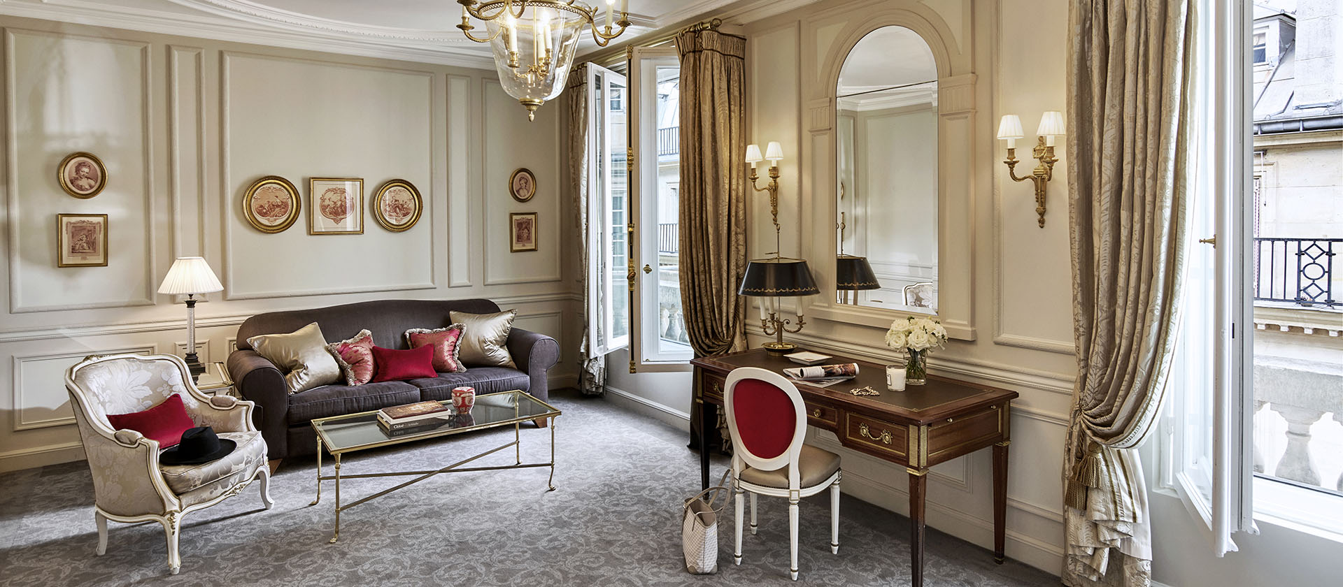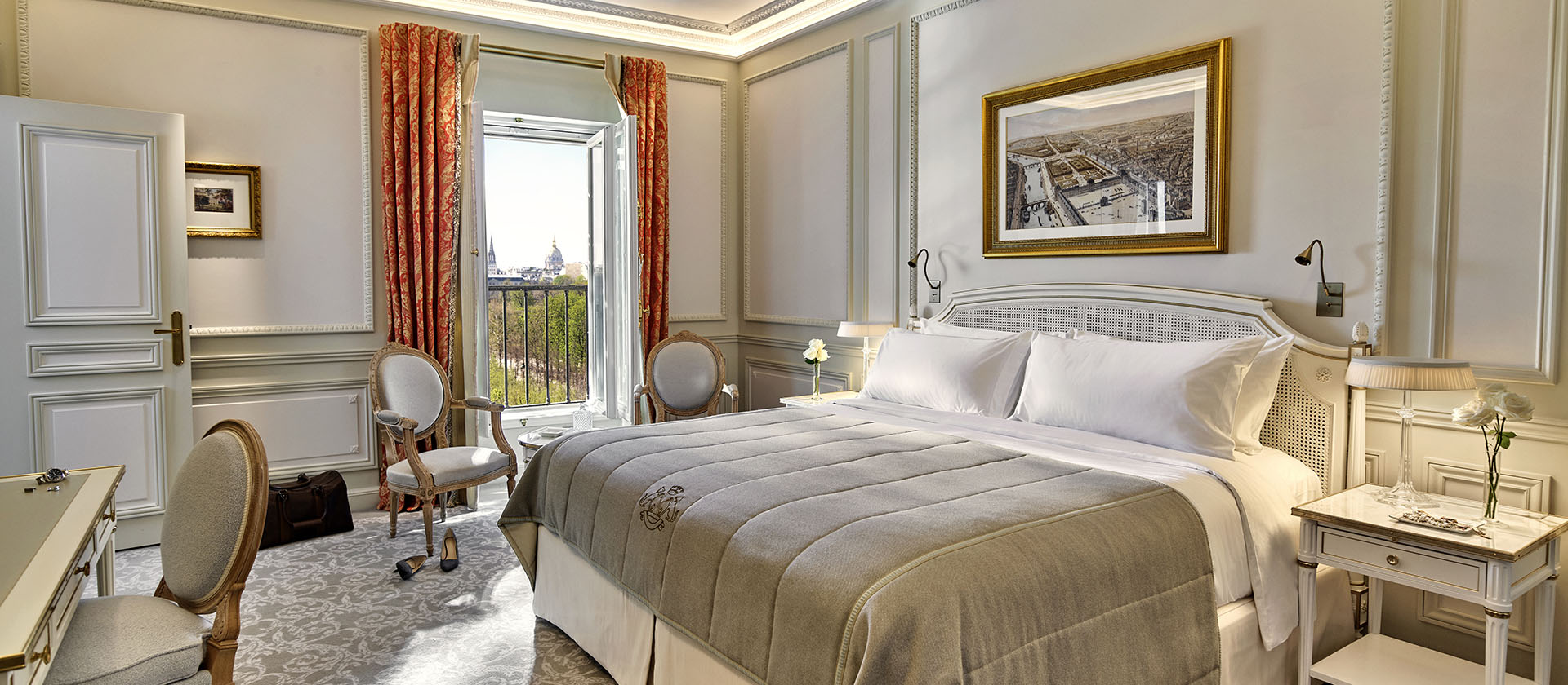 160 кв. м. Апартаменти у версальському стилі з високими стелями та дерев'яною підлогою складаються з трьох спалень з ліжками розміру king-size або twin, просторої вітальні з класичними витонченими меблями, обідньою зоною на 12 персон та декоративним каміном, мармурової ванної кімнати з глибокою ванною кабіною (деякі номери мають хаммам), передпокою, туалетної кімнати. Вигляд на Париж та його знакові пам'ятники – Ейфелеву вежу та Лувр. Доступно бронювання додаткового спального місця, дитячого ліжечка та суміжного люксу з видом на сад Тюїльрі. Розташований на першому поверсі. Розміщення: 3 особи.