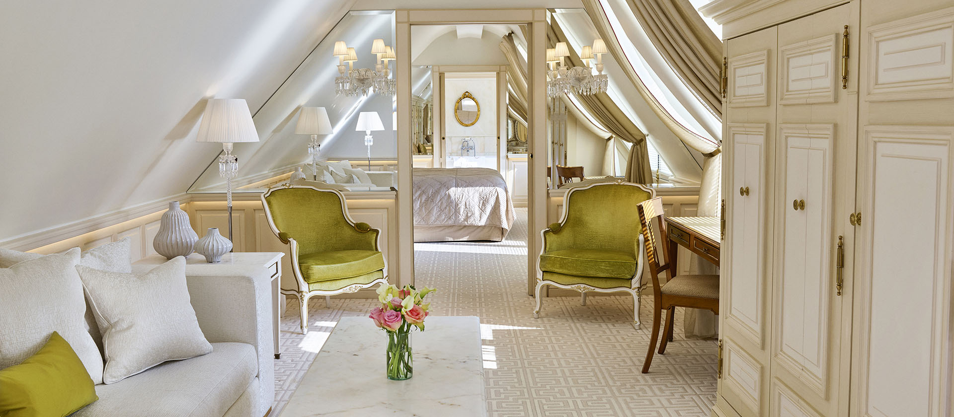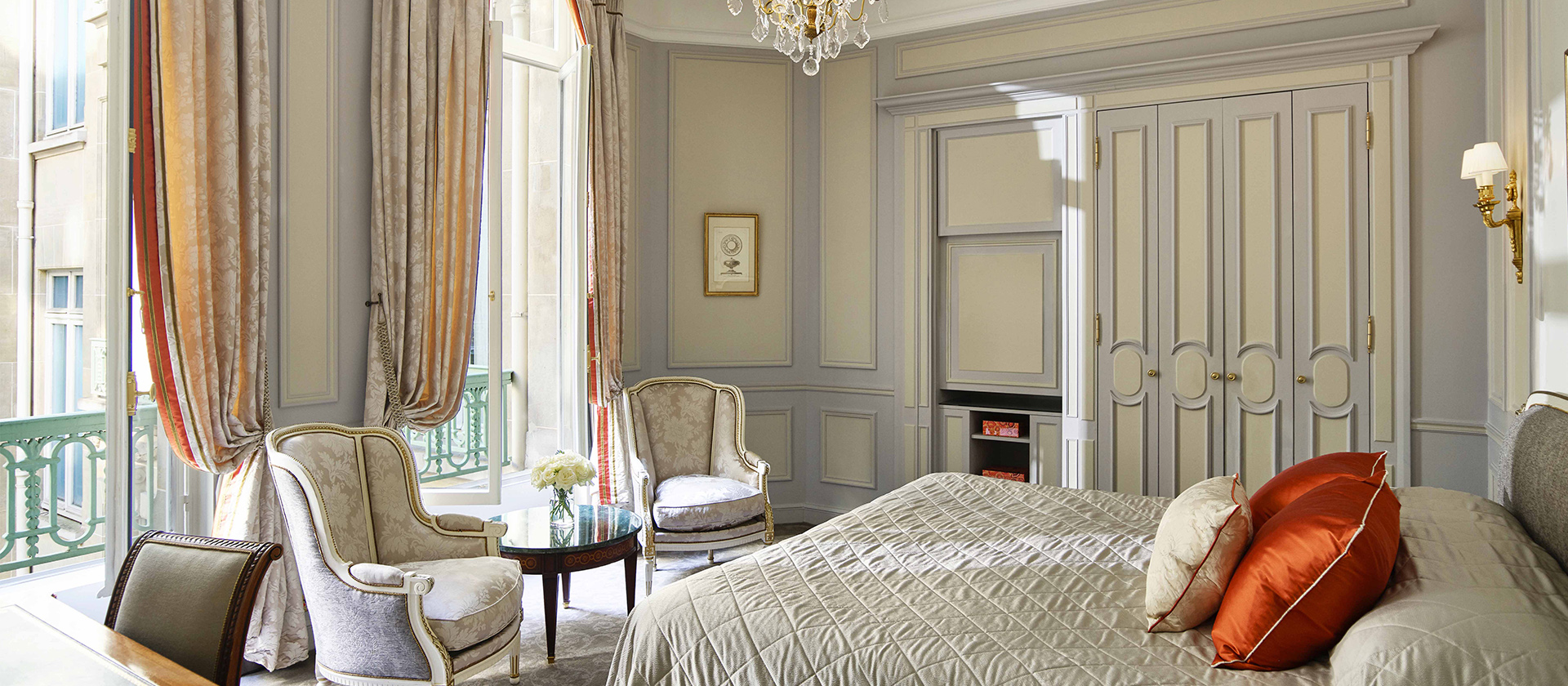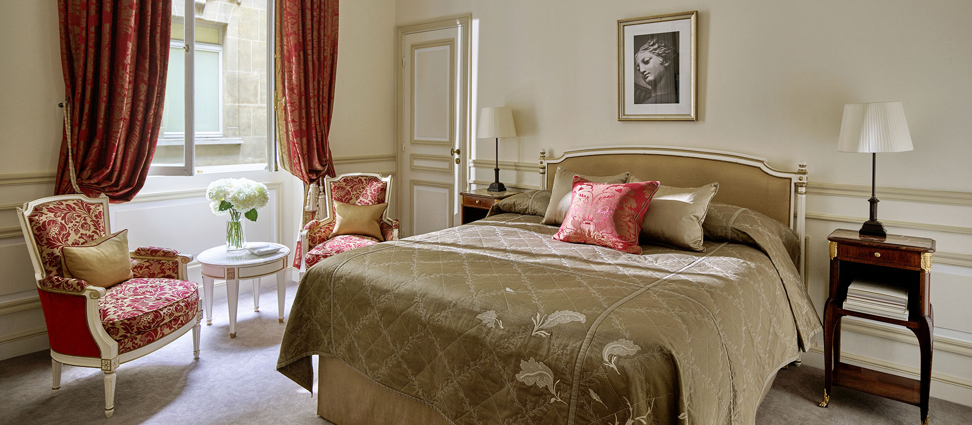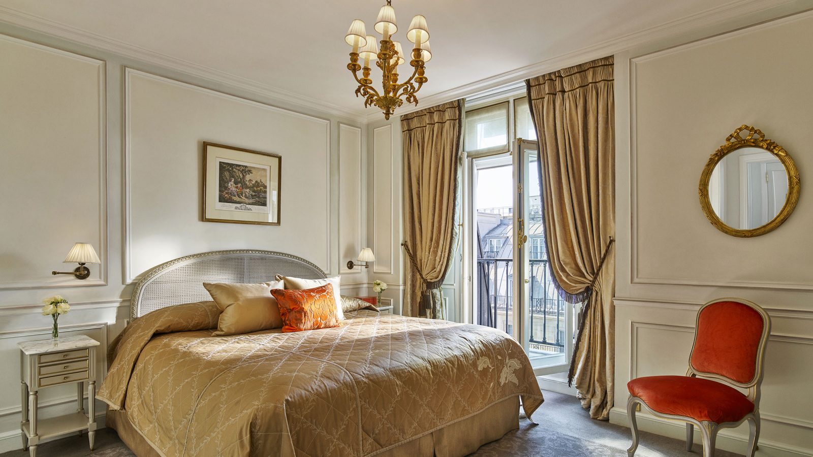 Номер у стилі епохи Людовика XVI складається зі спальні з ліжком розміру king-size або двох ліжок розміру twin, вітальні, гардеробної та мармурової ванної кімнати з природним освітленням, глибокою ванною та окремою душовою кабіною. Доступне бронювання додаткового спального місця, дитячого ліжечка. Вид на готельний внутрішній двір. Розміщення: 3 особи.