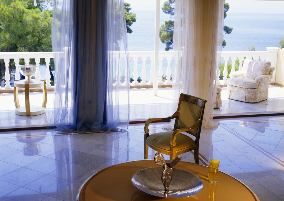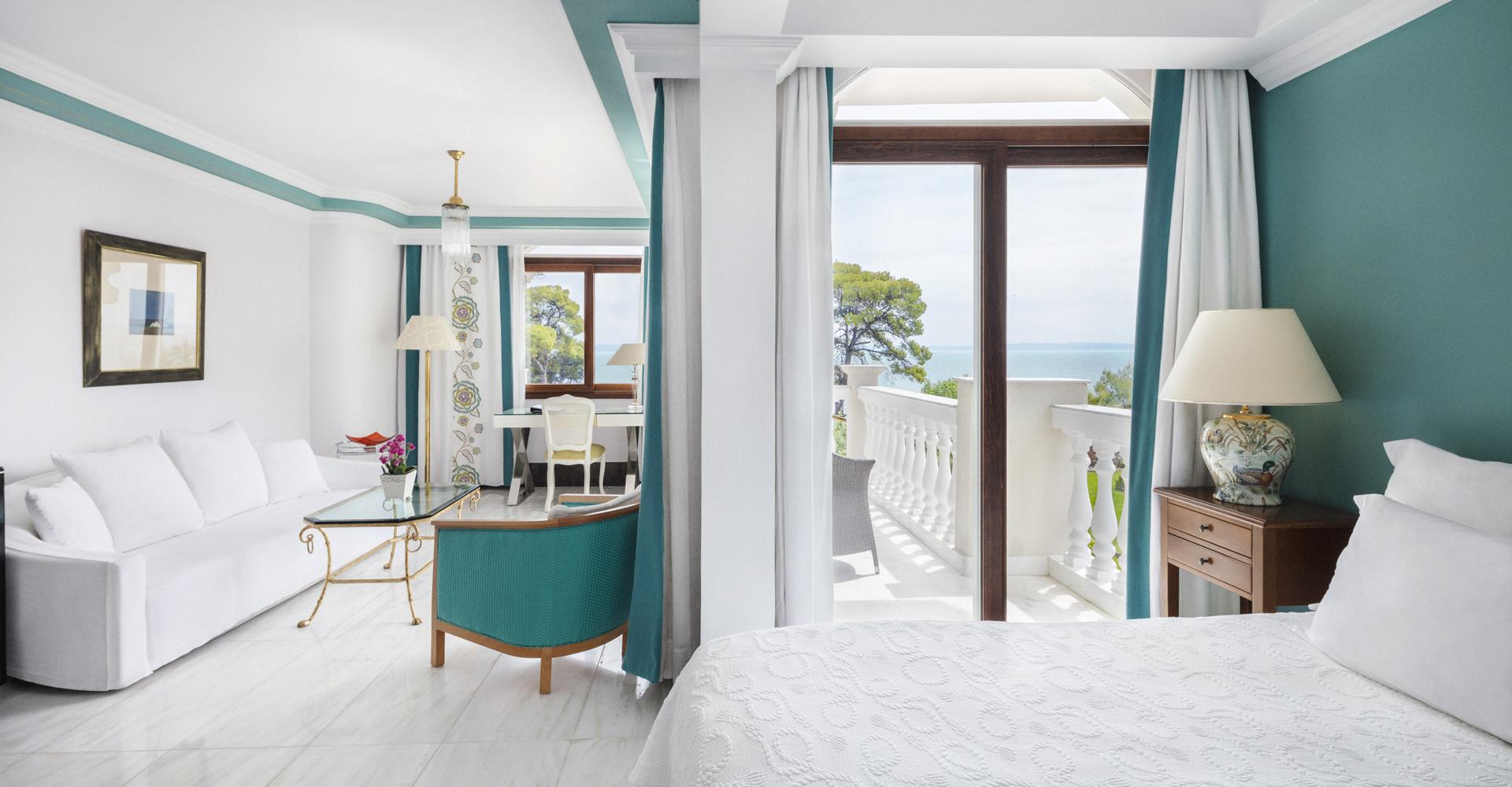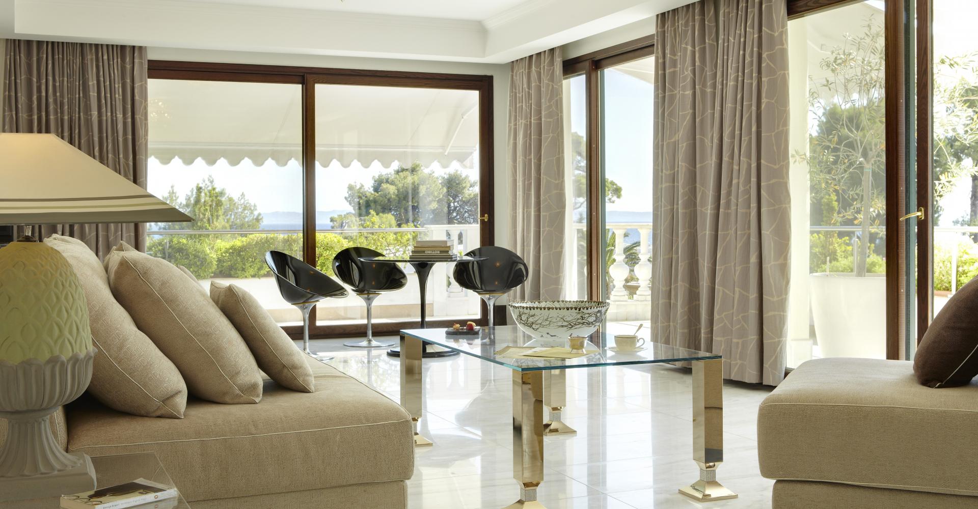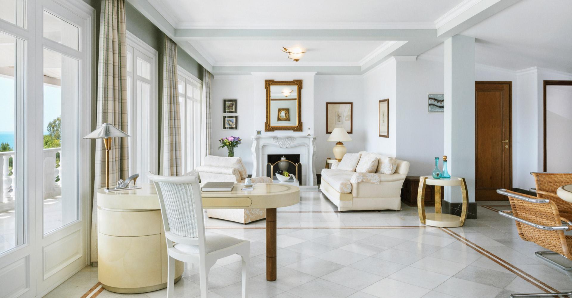 190 кв. м. Розкішний номер з вікнами від підлоги до стелі та панорамним видом на море складається зі спальні, розташованої на піднесенні, вітальні з антикварними меблями, мармуровою підлогою та гарним каміном. З величезної мармурової ванної кімнати відкривається чудовий краєвид на Середземне море, кімната обладнана гідромасажною ванною-джакузі та окремим душем, у номері є додаткова ванна кімната та величезний мебльований балкон. Розміщення: 4 особи.
