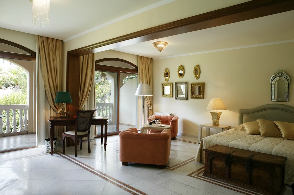 42-58 кв. м. Чудовий люкс складається зі спальні з великим двоспальним ліжком, великої вітальні, гардеробної, мармурової ванної кімнати з ванною і душем, в деяких номерах є мармуровий камін. З балкона або тераси з відпочинковою зоною відкривається чудовий краєвид на море. Розміщення: 2 особи.