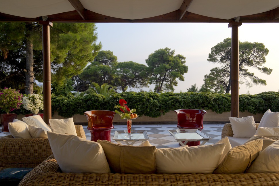 750 кв. м. Шикарна вілла включає три спальні, три мармурові ванні кімнати з гідромасажними ваннами та окремим душем, вітальню з мармуровим каміном, антикварними венеціанськими дзеркалами, оригінальними витворами мистецтва, справжнім кораловим столом та стільцями роботи Саарінена. Вілла повністю обладнана та має міні-кухню. Приватна тераса збудована на двох рівнях. На нижньому рівні знаходиться одна з трьох спалень і ванна кімната, а також великий нескінченний басейн з підігрівом, навіси та тенти від сонця, велике індійське ліжко під балдахіном, 2 зони з видом на море. Розміщення: 6 осіб.