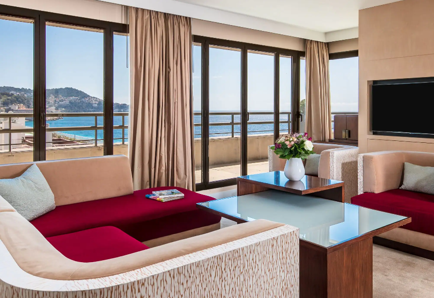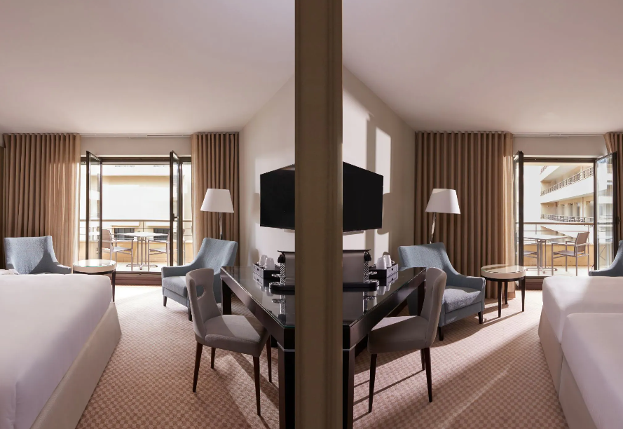 Ці дві суміжні кімнати загальною площею 66-67 квадратних метрів (710-721 квадратних футів) пропонують два односпальні ліжка в одній кімнаті та одне ліжко розміру "king-size" в іншій. У кожному номері є письмовий стіл і оздоблена мармуром ванна кімната. З номерів відкривається вид на внутрішній дворик готелю. Це ідеальне місце, щоб зарядитися енергією на Французькій Рив'єрі.