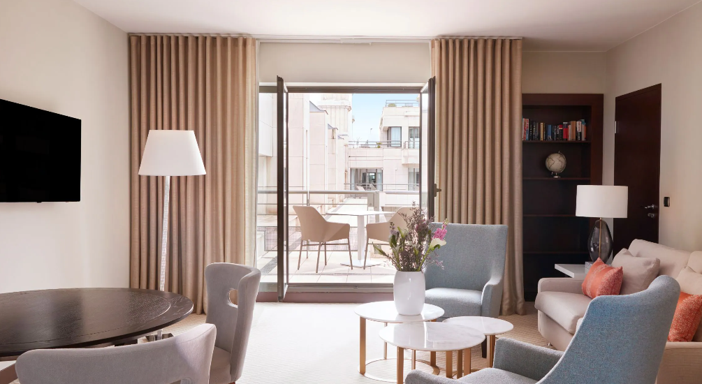 Цей люкс площею від 56 до 109 квадратних метрів (від 592 до 1184 квадратних футів) пропонує одне ліжко розміру "king-size", окрему вітальню та розкішну мармурову ванну кімнату. До послуг гостей мебльований балкон із видом на терасу та басейн.