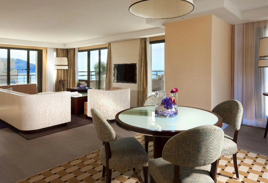 Цей престижний люкс площею 77 квадратних метрів (861 квадратний фут) пропонує одне ліжко розміру "king-size", окрему сучасну вітальню та розкішну мармурову ванну кімнату. До послуг гостей простора мебльована тераса з панорамним видом на море.