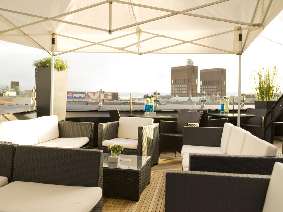 Постільна панель на 8 поверсі пропонує бутерброди і торти. Ведуться люди з Осло. Ви можете сидіти в повітрі влітку.