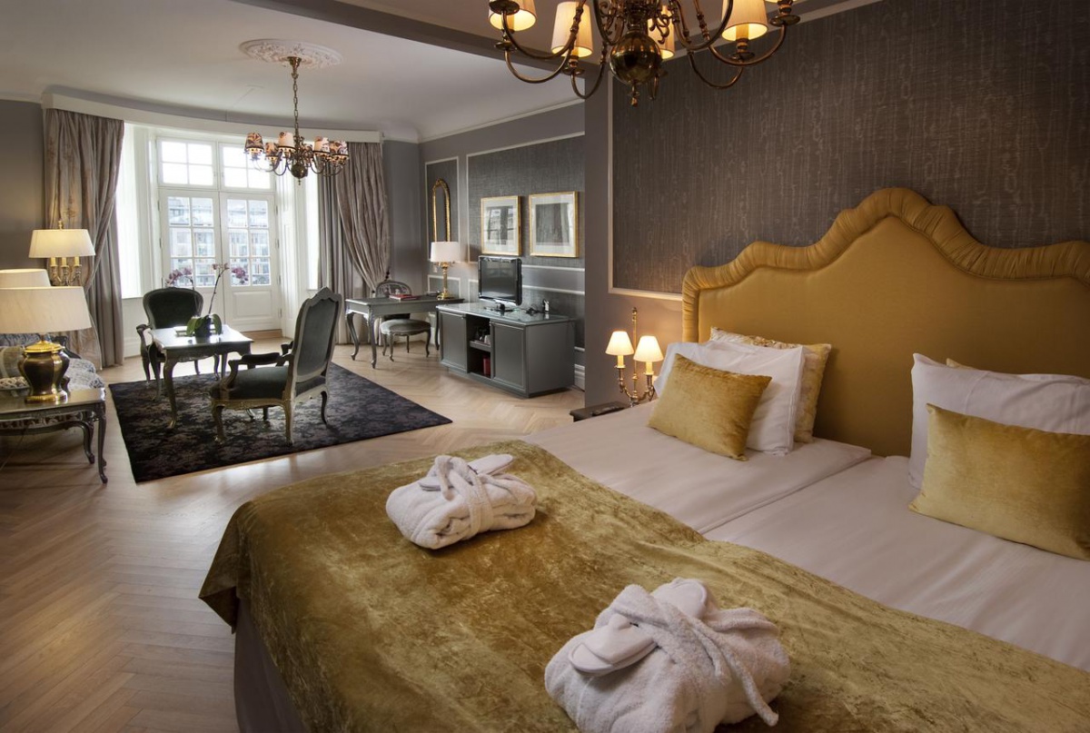 Ibsen Люкс (66 кв. м) - названа на честь відомого драматурга Ібсена; в класичному стилі Гранд. З вітальні два спальні, балкон з видом на ворота Карла Джоан. У вітальні є круглий стіл, що знаходиться на невеликій зустрічі та обідах. Номер дуже популярний серед гостей.