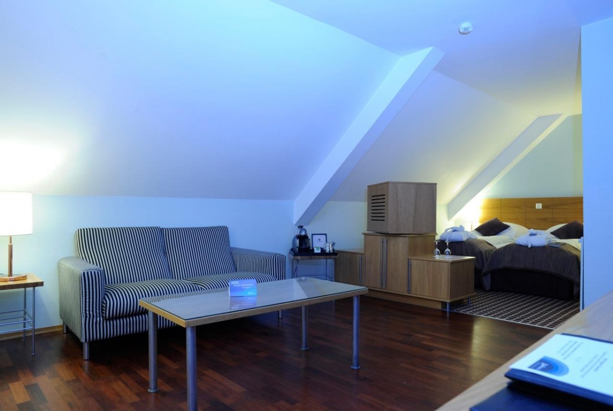 Полулюкс - простота номер, складається з зони відпочинку, вітальні, спальні, ванної кімнати.