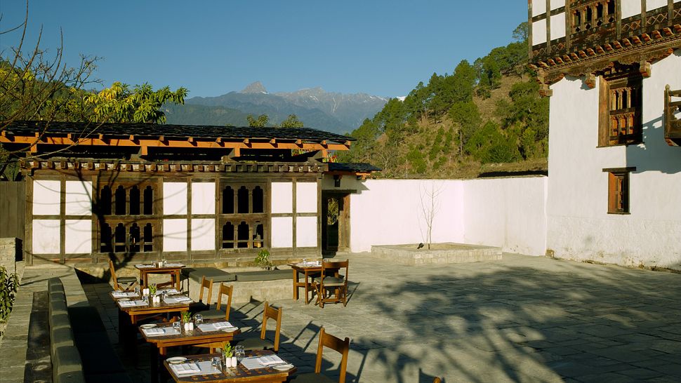 Назва готельного комплексу Amankora складена з двох мов – санскриту та бутанської. На санскриті слово «Aman» означає «світ», з бутанського «kora» перекладається як «мандрівний пілігрим». Готельний комплекс «Світ мандрівних пілігримів» складається з 5 невеликих затишних бутік-готелів. Кожен готель має від 8 до 29 номерів і розташований в ущелині, що загубилася в сіни Гімалайських гір.