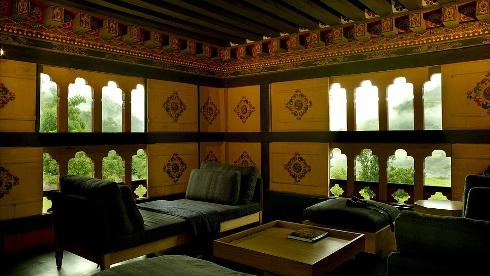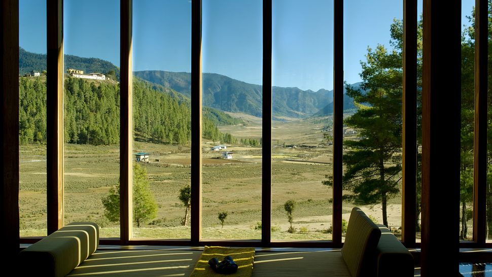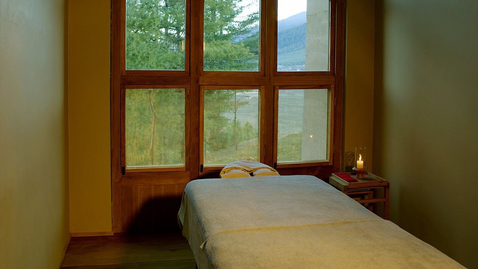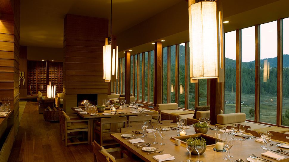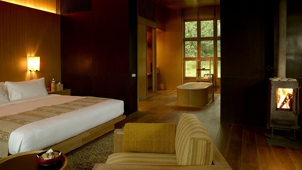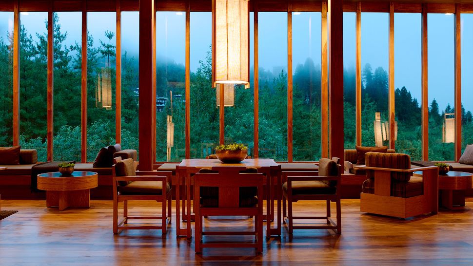 У готелі лише з 24 номерів. Усі вони просторі, виконані в аскетичному буддійському стилі із природних матеріалів. Мінімалізм, екологічність та водночас турбота про максимальну зручність гостя – ця ідеологія мережі Aman знайшла своє відображення і в дизайні номерів цього затишного гірського готелю. Стіни номерів оббиті панелями з натурального дерева спокійних світлих відтінків, а з величезних вікон відкривається вид на гірський масив Джомолхарі. Кожна кімната оснащена джакузі. Ванна Джакузі знаходиться на веранді в оточенні скляних стін. Це дивовижний досвід, коли можна поніжитися у теплій ванній, насолоджуючись видом на вічні Гімалаї. У кожному номері також є бухарі, народна бутанська дров'яна пічка. Все це, і крім того особлива аура Гімалаїв привнесуть у Ваш відпочинок у Бутані умиротворення, гармонію та розслаблення.