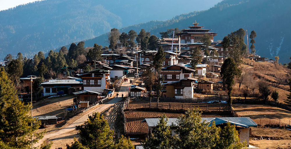 Amankora Gangtey розташувався в оточенні соснових лісів та ферм у мальовничій долині Gangtey.