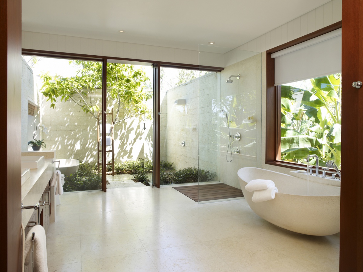 Ocean Facing Кімната: до 60 м1 часй Пізні меблі з Балі складається з спальні з двоспальним ліжком, ванною кімнатою з ванною і душовою кабіною, простою терасою з зоною відпочинку, зоною для їжі і панорамним видом на океани і сади.