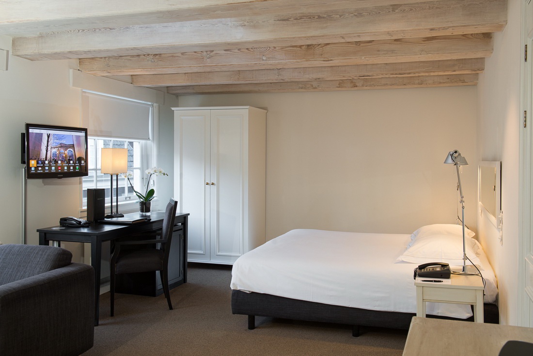 Полулюкс Українська Канальний перегляд (45-75 кв. м) - вид на канал або сад; деякі розташовані на підлозі мансарда; проводяться в чорному, білому, білому або біло-східному тонах; складається з спальні з ліжком з колодою, ванної кімнати з ванною і душем.