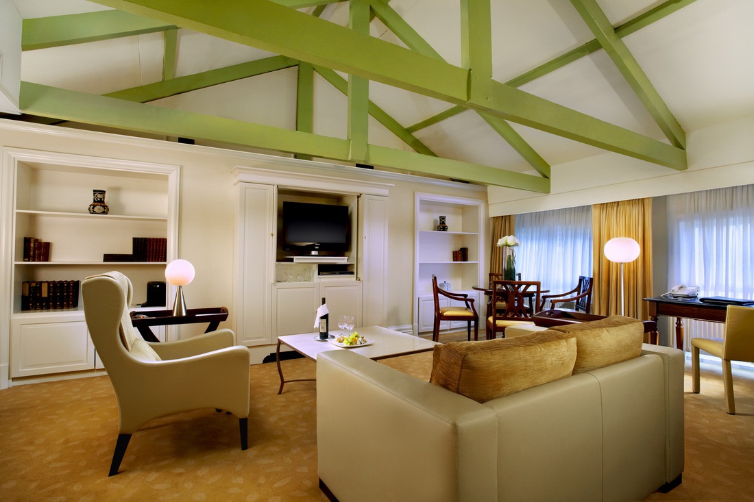 Полулюкс: - 29-59 м2. Складається з спальні з ліжком kingsize, вітальня з диваном і обідньою зоною 4 осіб, санвузол з ванною і душею, вид на історичний центр міста або саду готелю. Крім того, програвач CD/DVD.