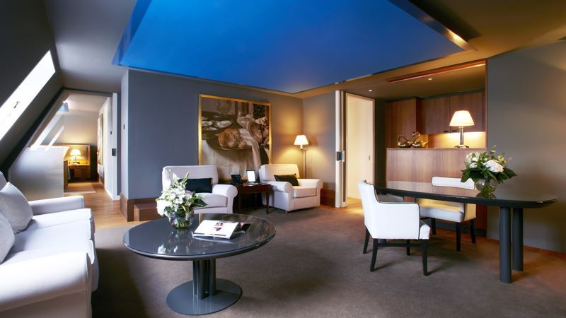 132 кв. м. Розкішний унікальний люкс з сучасним дизайном поєднує в собі старовинні ноти в обстановці приміщень і застосування сучасних технологій, нагрітий поверх обладнаний датчиками руху для освітлення. Номер складається з спальні з великим ліжком, величезною вітальнею з зоною відпочинку, обіднім столом і шафами, простою кімнатою і ванною кімнатою з великою мармуровою ванною і окремим душем. З тераси номеру відкривається вид на річку, можливо, перекриття люкс з іншими категоріями. Послуги палацу доступні.