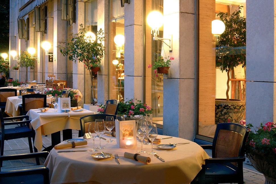 Чудовий ресторан Поме-Канал За допомогою домінуючих кольорів бамбука і кориці пропонують оригінальну суміш традиційних продуктів по всьому світу, а гостям подаються вишуканий чай, кава, вино і сигари.