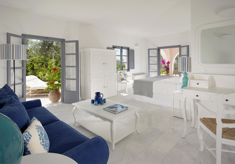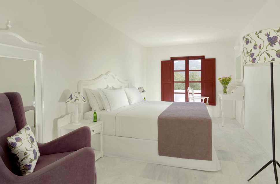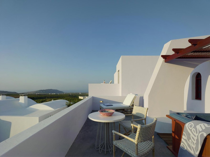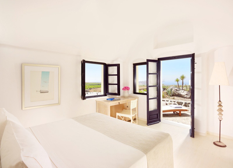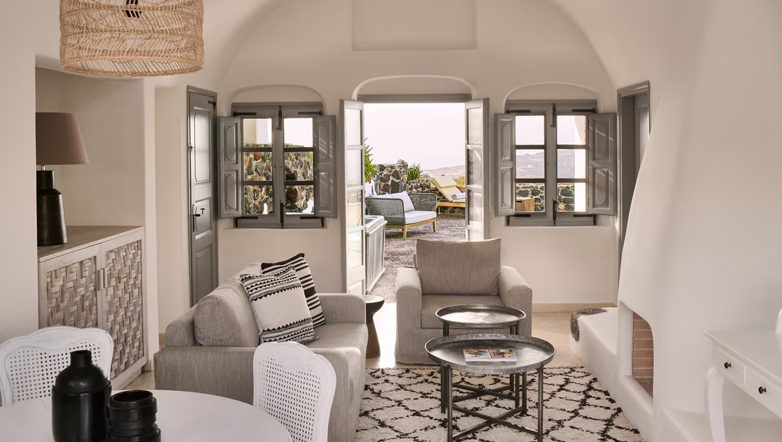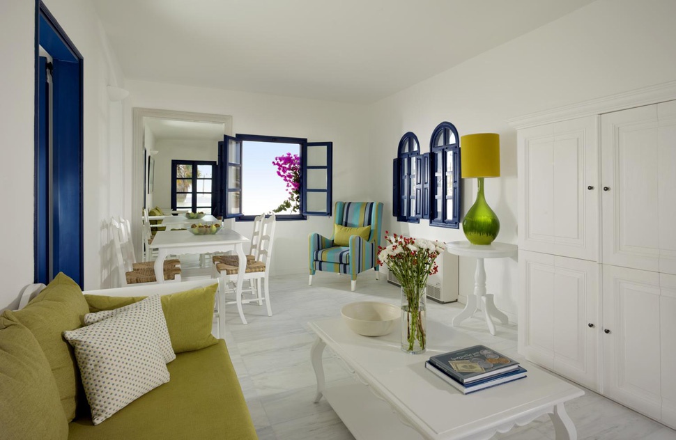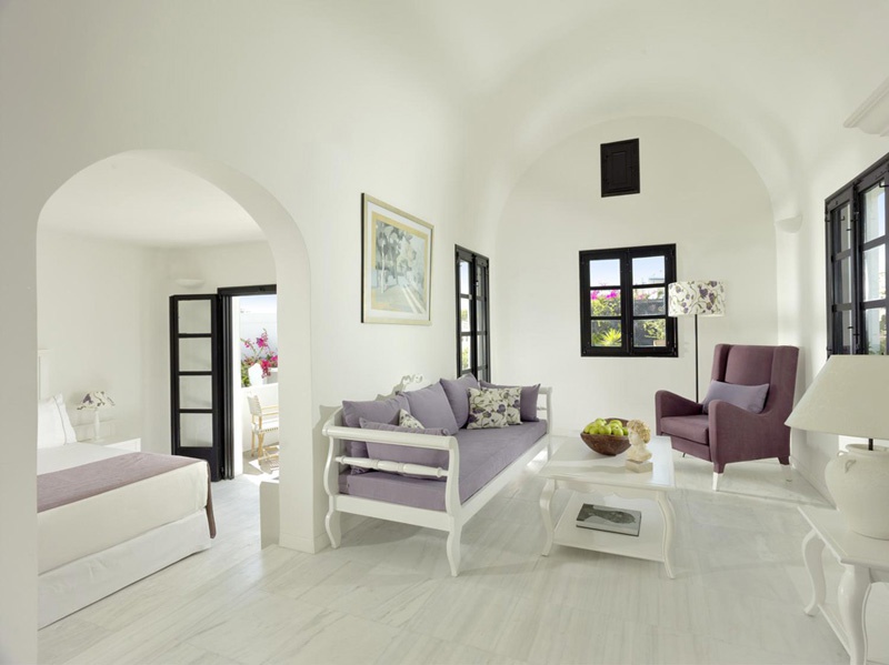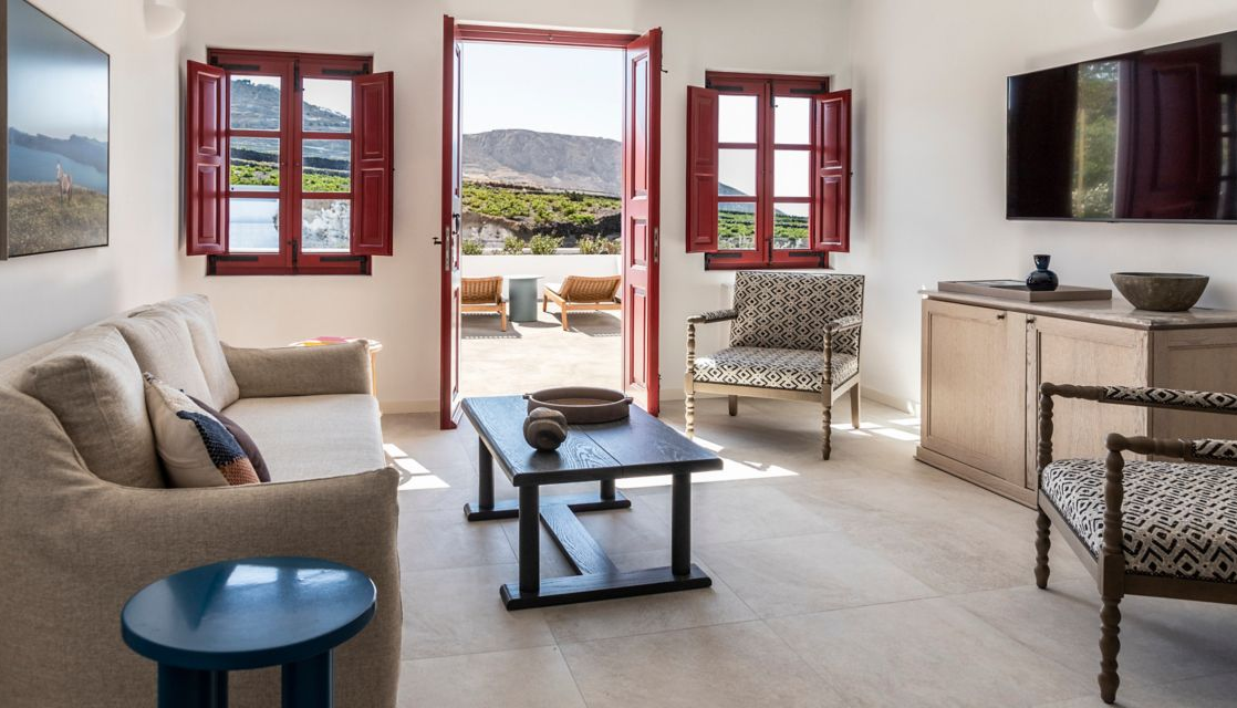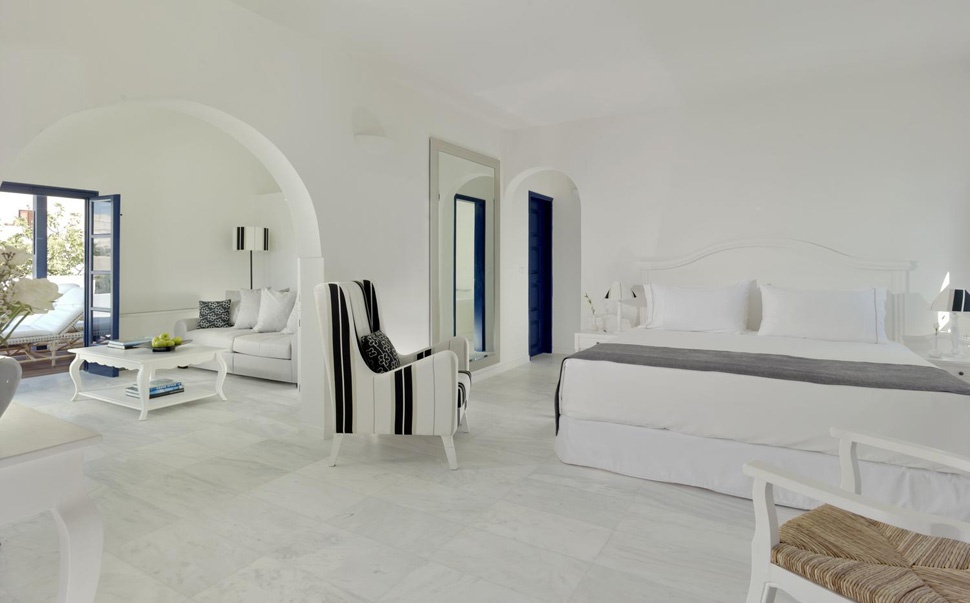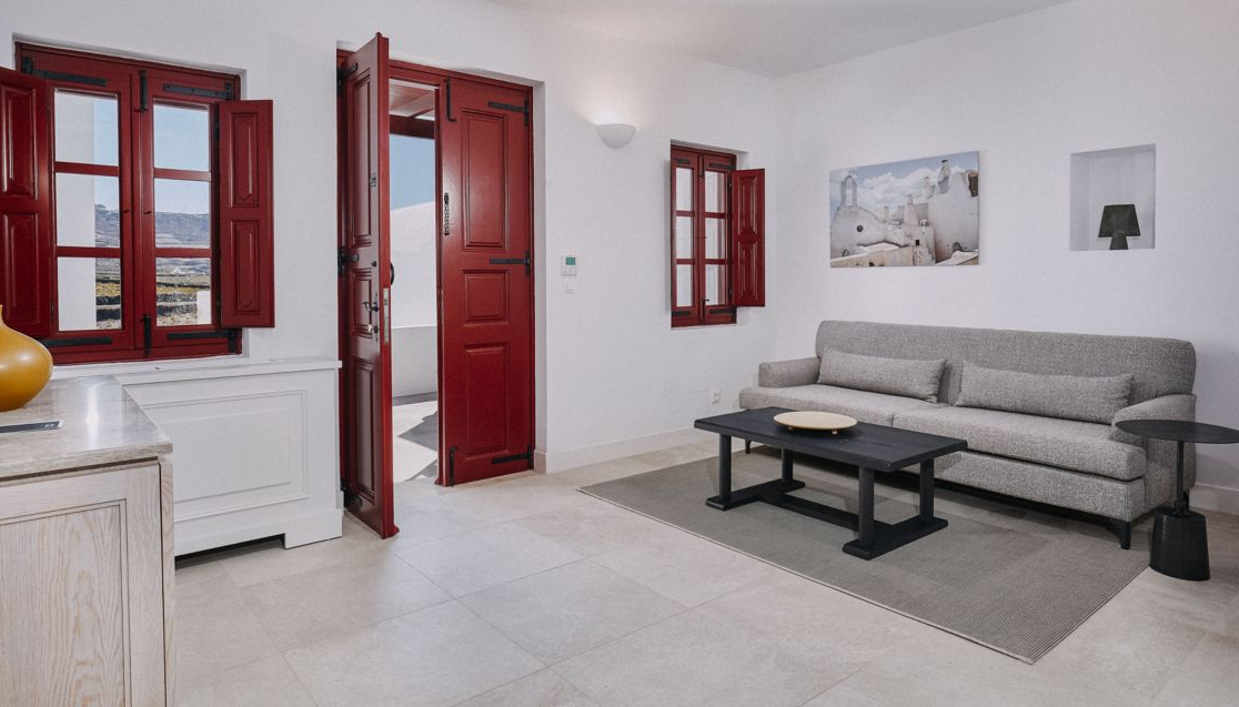 Стильний сімейний курорт Vedema пропонує просторі люкси та вілли з власними терасами, а деякі з джакузі або приватними басейнами. Комплекс номерів був традиційно створений вручну, щоб відобразити тепло та вишуканість, які притаманні острову Санторіні. Інтер’єри були продумано оформлені шляхом поєднання свіжих кутастих ліній кікладської архітектури з антикварними меблями з острова, які пропонують розкішне життя та ексклюзивні твори мистецтва, що свідчить про прагнення курорту до продуманих штрихів.
