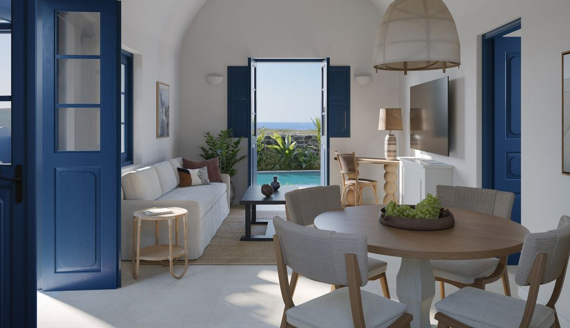 Vedema Resort – це справжній райський куточок, де витончена розкіш, бездоганний сервіс та комфорт XXI століття оточені дивовижною красою та віковими історичними традиціями стародавнього острова Санторіні.