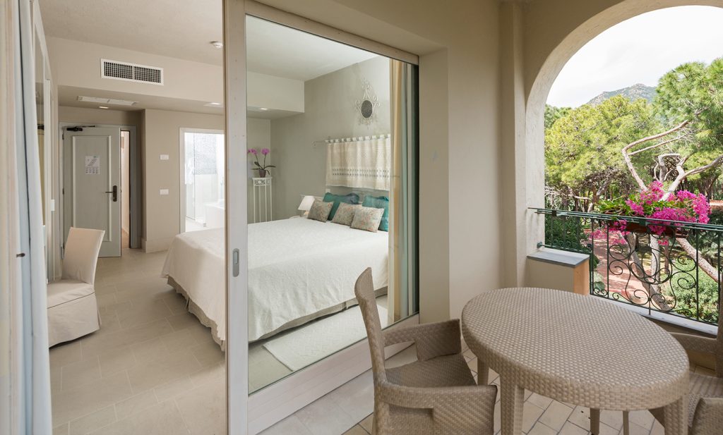 Forte Village Resort - Il Castello – елегантний готель, виконаний у середземноморському стилі, розташований між сосновим гаєм та затишним пляжем курорту. Ексклюзивні апартаменти, що знаходяться на 4 та 5 поверхах дозволяють насолоджуватися панорамним видом моря, з усіх вікон, балконів та терас відкривається мальовничий краєвид на морські простори та гори. Готель має власний басейн з підігрівом, чудовий ресторан Кавальєрі, потопаючий у густій зелені порадує гостей приємною атмосферою та фортепіанною музикою.