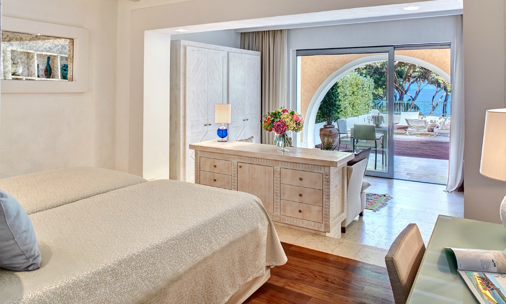 32 кв.м + 27 кв.м тераса. Комфортабельний номер з видом на море має спальню з двома ліжками розміру «queen-size» і чудовою терасою з боку моря. Усі номери мають ванну кімнату з ванною і душовою кабіною. У деяких номерах є гідромасажна ванна з хромотерапією.