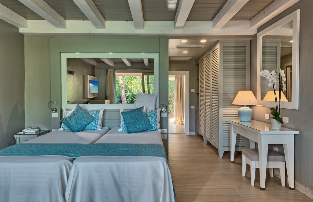24 – 30 кв.м. Повністю відремонтований Deluxe Bungalow складається з просторої кімнати з широким двоспальним ліжком та диван-ліжком. На запит надається додаткове ліжко. У ванних кімнатах є душ із окремою ванною кімнатою. Номери виходять на внутрішній дворик та сад. Ідеально підходить для двох дорослих та однієї дитини.