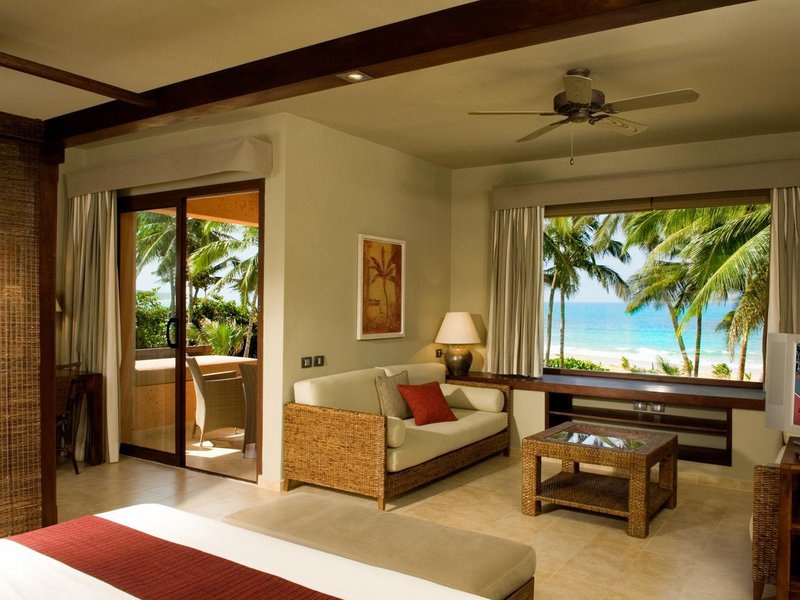 Luxury Ocean Front Junior Suite (74 кв.м) - розташовані на узбережжі, з видом на океан, складаються зі спальні з просторою вітальнею, ванною з великою ванною на двох, балкона або тераси з шезлонгами, власного басейну.