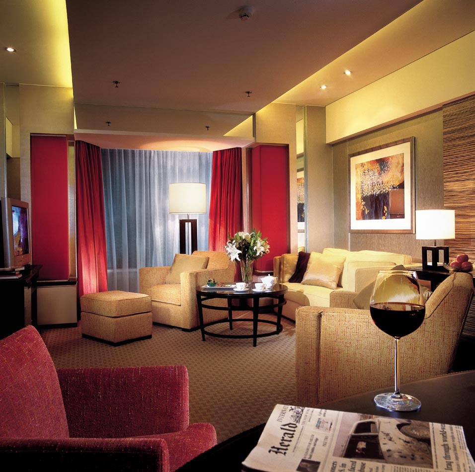 У номерах, елегантні класичні інтер'єри в теплих тонах, гофровані на підлозі, комфортабельні меблі, м'яке освітлення, фарба в китайському стилі, великі вікна в епоху, з яких відкривається панорамний вид на парк і місто.