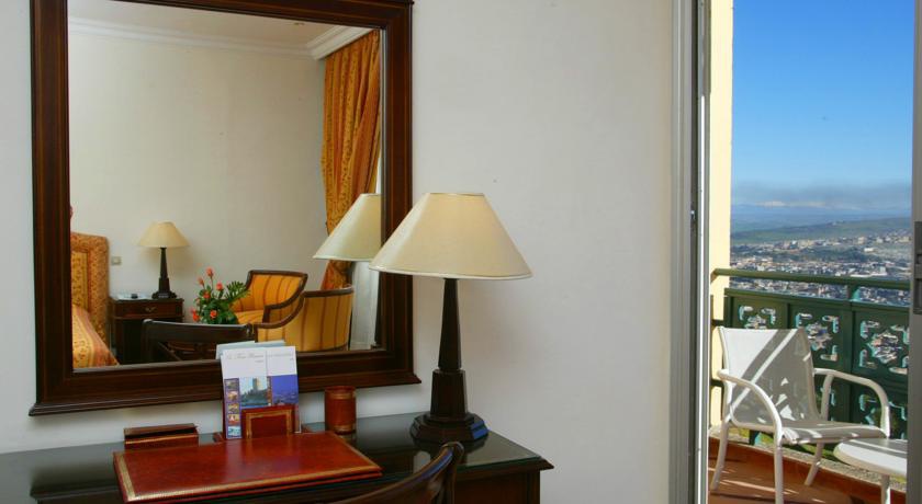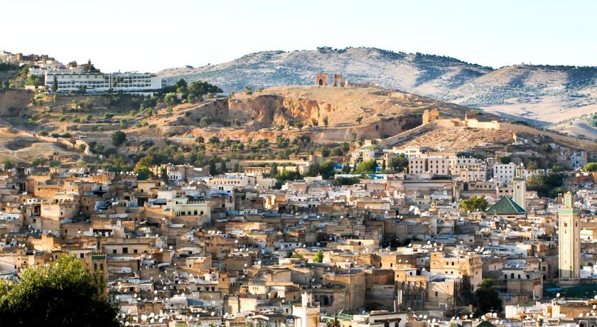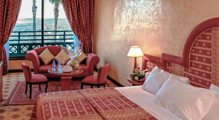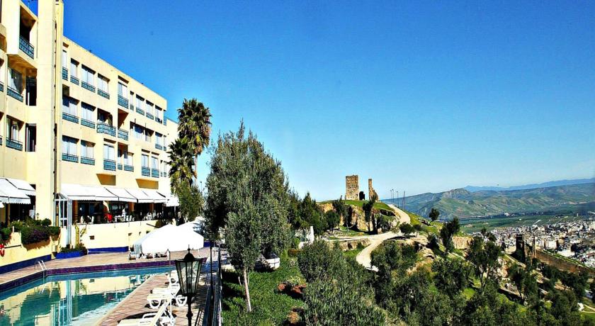 Розташований на гірському схилі Лес Мериди Він піднімається над древньою Фезом, кинувши своїх гостей на ексклюзивних видах середньовічного міста з вузьким лабіринтом, сотнями нор, мініатюрних традиційних будинків і найяскравіших ринкових зонах. Будівля готелю самому, побудованого в сучасному стилі, потопає в зеленню величезного парку, з його терасою, блакитним прямокутникам басейну, як гольф-полів, відмінно вписується в загальну рівнину гори. Краса прилеглих територій та екскавація міста метро відкривається відмінні види з номерів готелю в теплій меді та маршрутних тонах.
