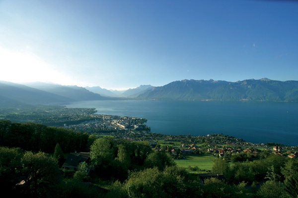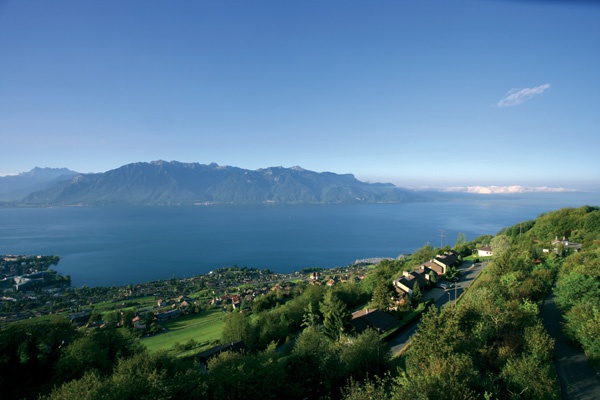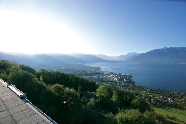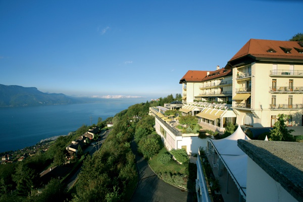 На горі Мон Пелерін над Долиною Рон на східному березі Женевського озера. Найближчий міжнародний аеропорт знаходиться в Женеві, регулярний залізничний сервіс з Женева, Лозанне, Монреукс і Вев.