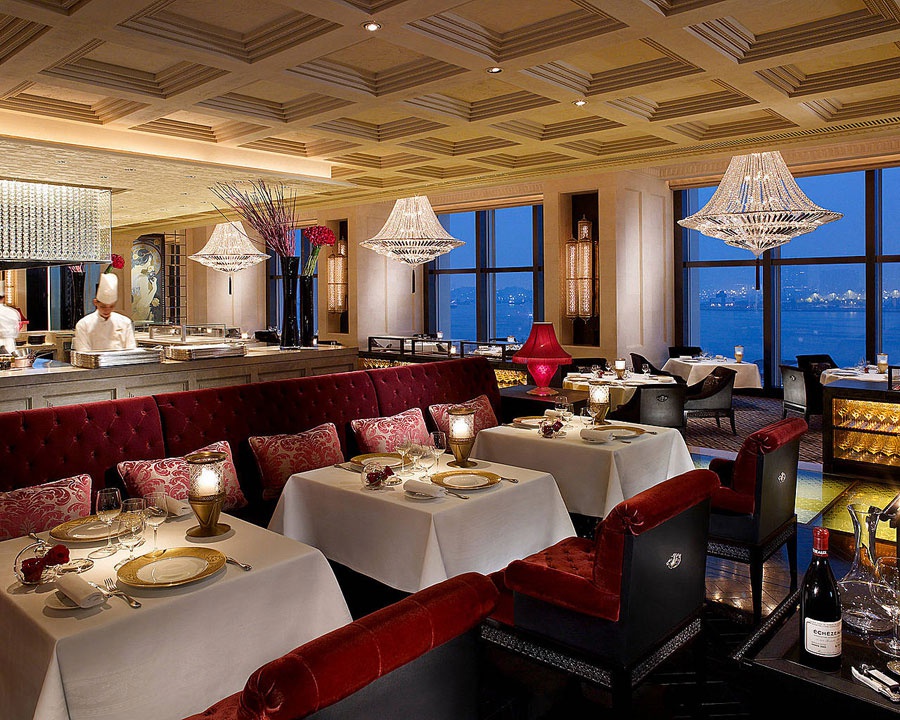 The Restaran Caprice об'єднує в гармонії елюзивних потужностей французької кухні, вишуканого декору та відмінних видів на затоці Вікторія та Кельнському півострові. Гості можуть скористатися міні-баром, вбиральнею, письмовим столом і телефоном з прямим набором. Рекомендується забронювати столик. Дрезкод, Бізнес-кейвінг.