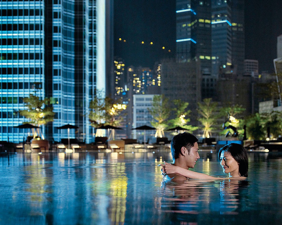 Делюкс Peak номер(45 квадратних метрів) - розташований на 9-43 поверхах; з видом на вершину Вікторія і місто; складається з спальні, міні-host і ванної кімнати з ванною кімнатою і душовою кабіною. Яскрава гамма, натуральні відтінки і дерево підкреслюють екзотичне поєднання сучасних і азіатських стилів. Три людини.