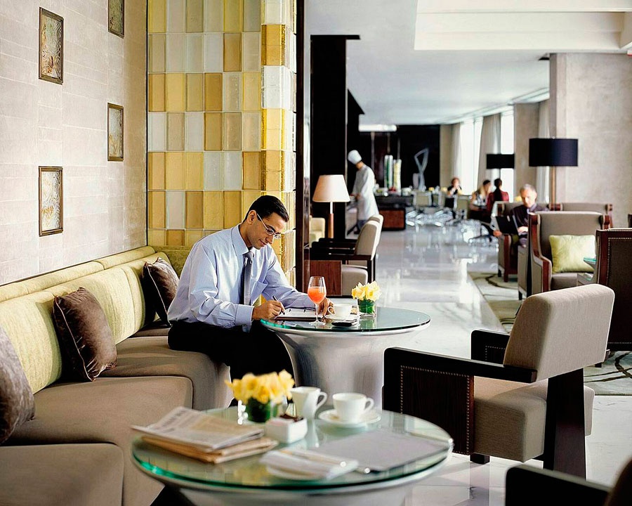 У затишному барі в лобі готелю гості зможуть спробувати різноманітні напої, десерти та закуски, а також оцінити стильність бару, що вирівняється зі скляними стінами приправи. Дрезкод, Бізнес-кейвінг.