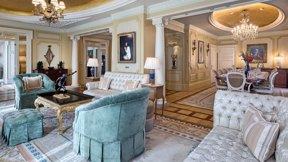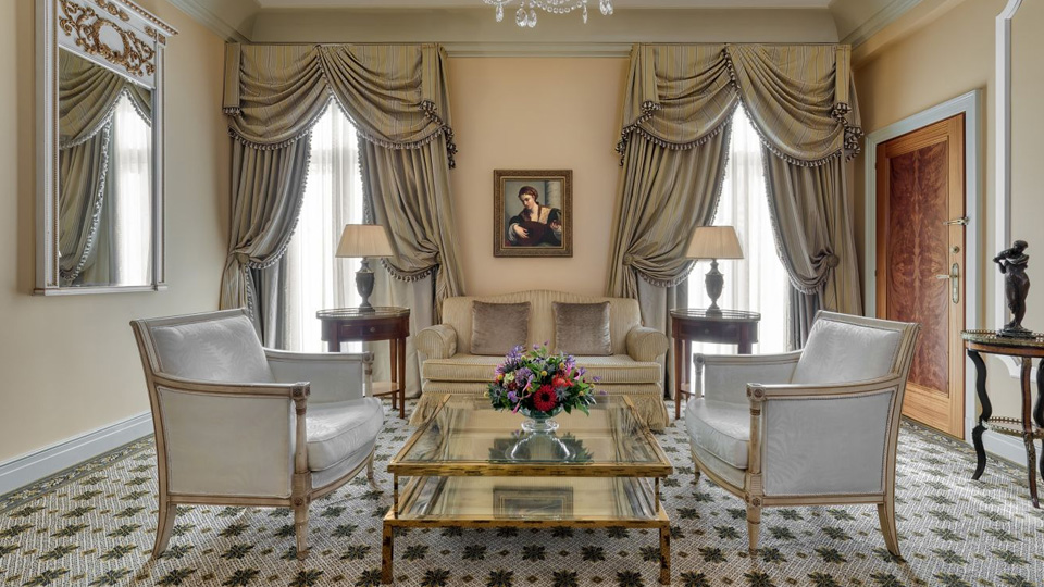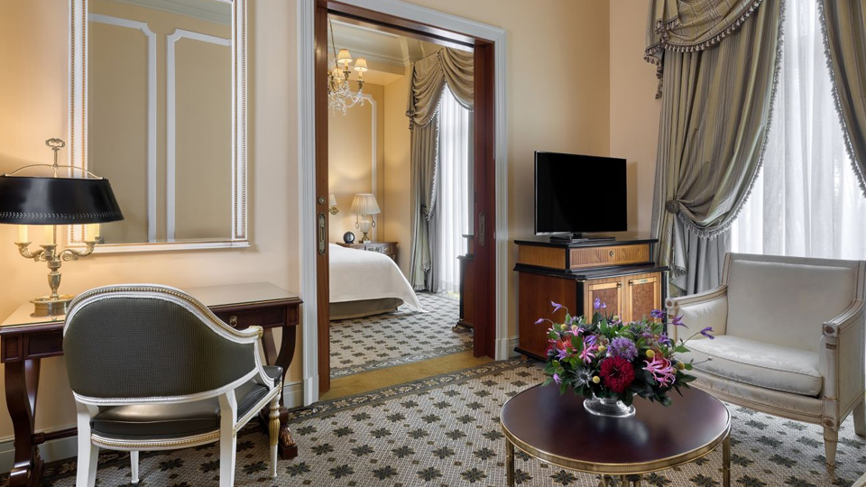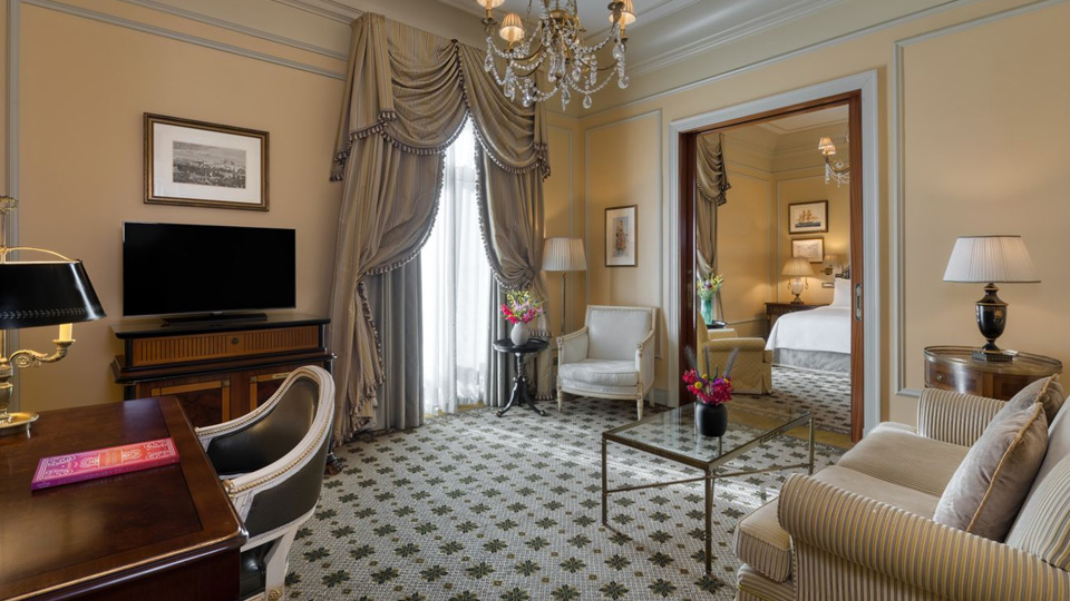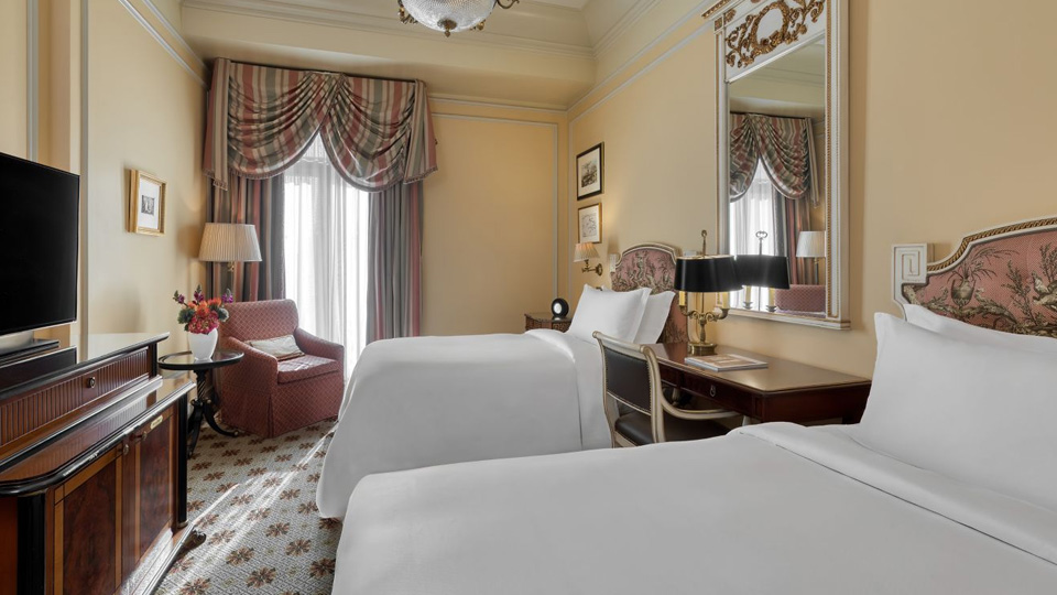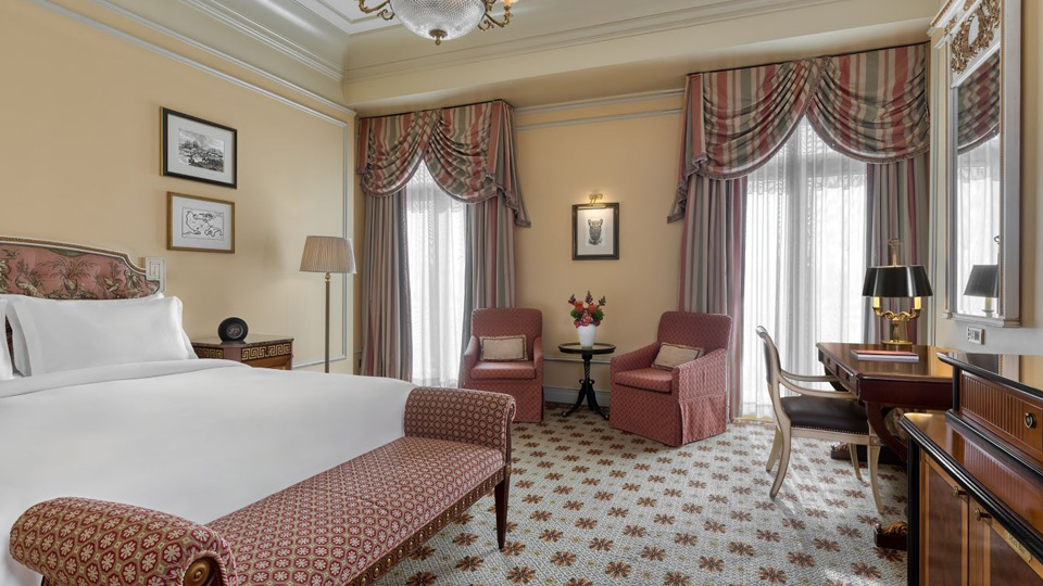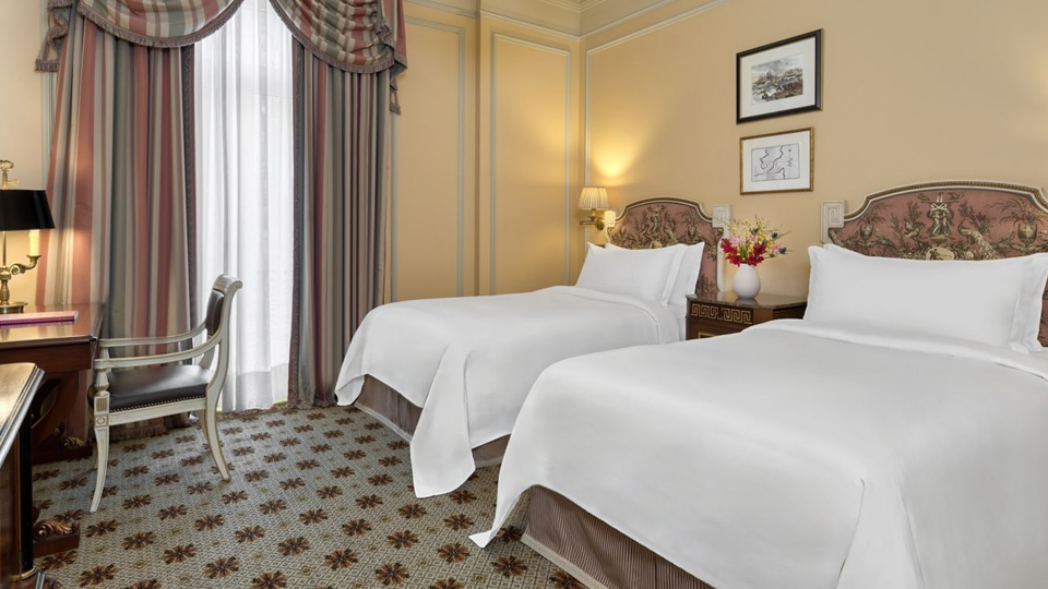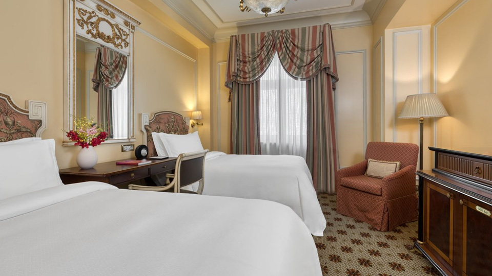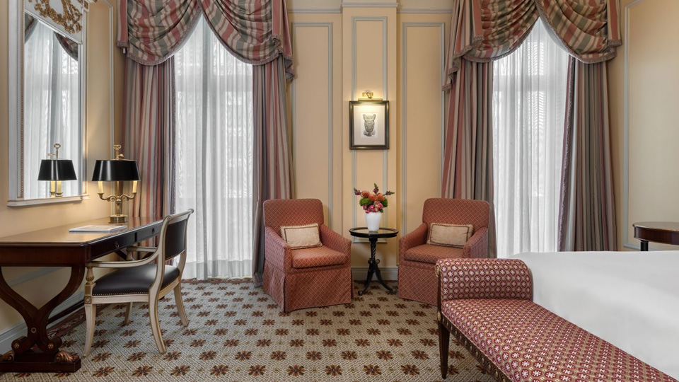 У готелі 320 комфортабельних номерів різних категорій, включаючи Rooms та Suites. У номерах — індивідуальні класичні інтер'єри, що відтворюють атмосферу XIX століття: високі стелі з ліпниною, дорогі килими, оздоблення з благородного дерева та мармуру, кришталеві люстри та дзеркала в золочених рамах, антикварні меблі та старовинні предмети мистецтва, справжній живопис та художні оздоблення.