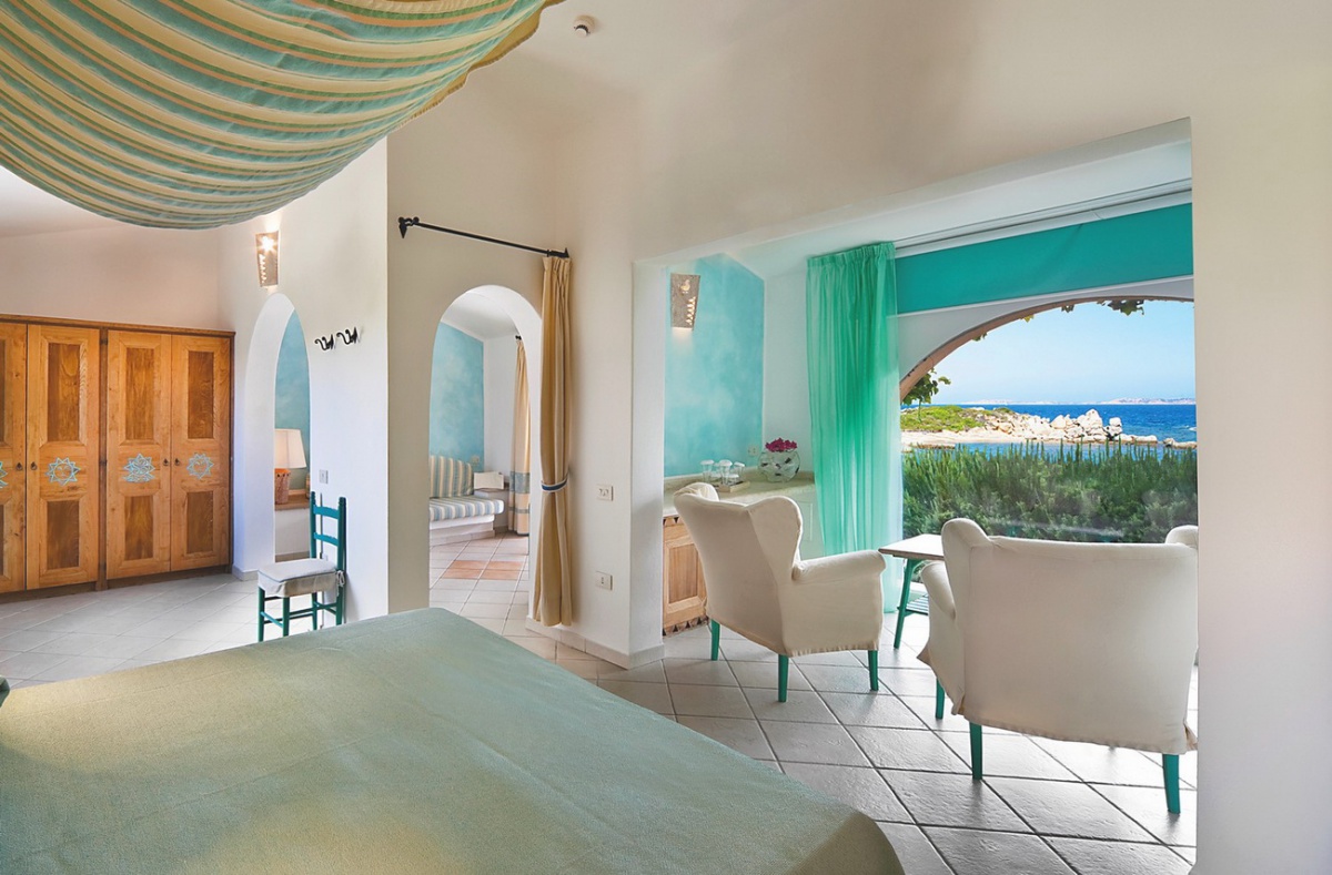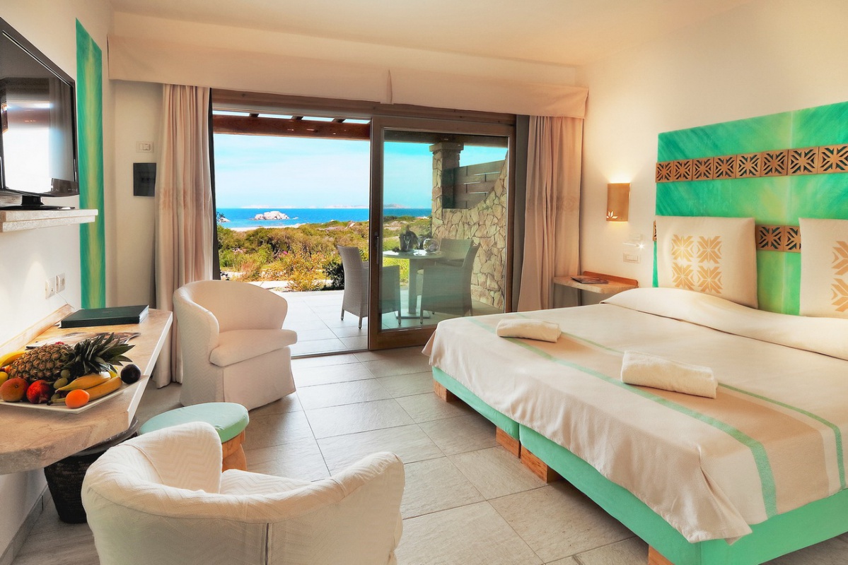 Готель має 140 комфортабельних номерів різних категорій. У номерах — вишукані інтер'єри у світлих тонах, виконані в середземноморському стилі, з підлогами, викладеними плиткою, зручними меблями, прикрашені декоративними тканинами ніжних кольорів та витонченими елементами декору в традиціях Сардинії, з веранд відкривається чудовий краєвид на море та навколишні ландшафти.