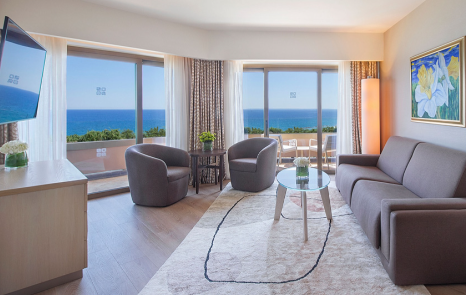 Superior Sea View. Площа номера – 35 кв.м, він складається з вітальні, ванної кімнати з джакузі та спальні з балконом. З номера відкривається чудовий краєвид на море.