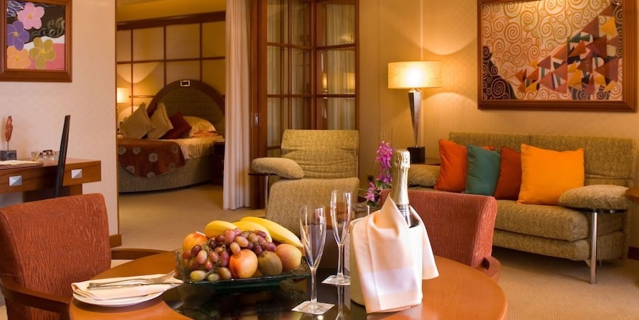 King Leasure Suite/Family Suite Inland View, King Leisure Suite/Family Suite Side Sea View, King Leisure Suite/Family Suite Full Sea View. Площа номерів – 60 кв.м, вони складаються з 2 кімнат, вітальні, спальні, ванної кімнати з джакузі та балкону.