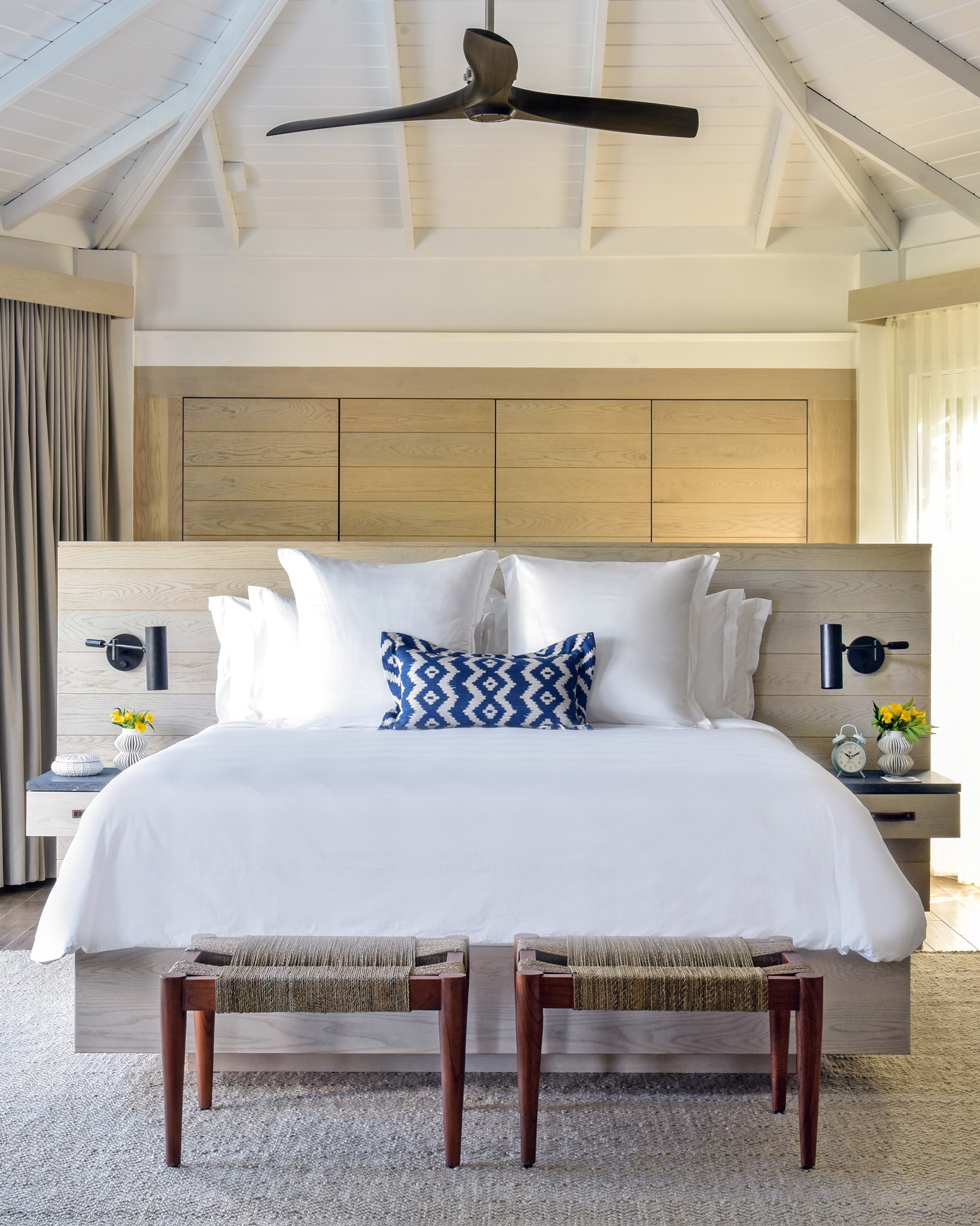 418 квадратних метрів вілли з чотирма спальнями поєднує в собі простоту простору з відкритими зонами відпочинку, де можна їсти, відпочивати біля басейну і насолоджуватися видом на курорт і блискуче море. У трьох повністю обладнаних санвузлах є душова кабіна в номері і в відкритому повітрі, а також відкрита ванна.