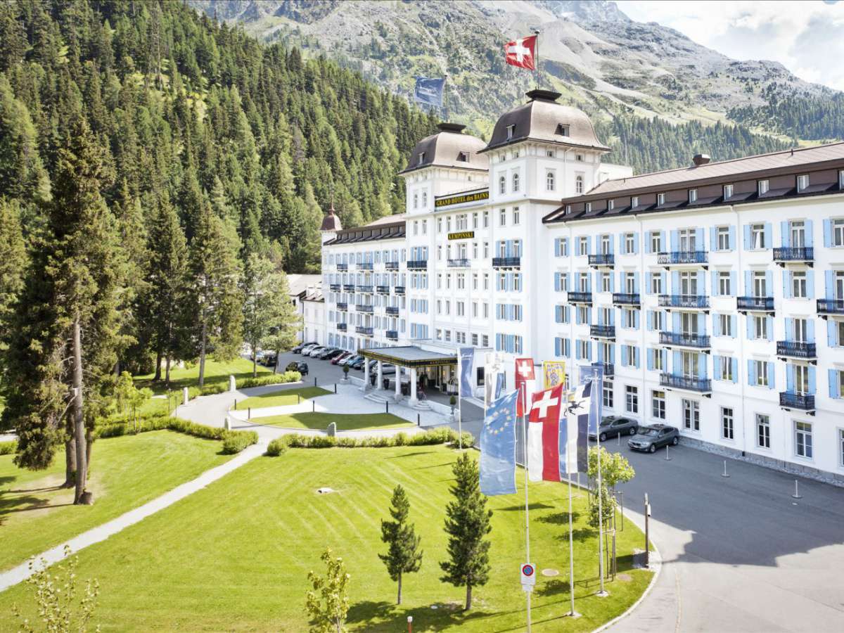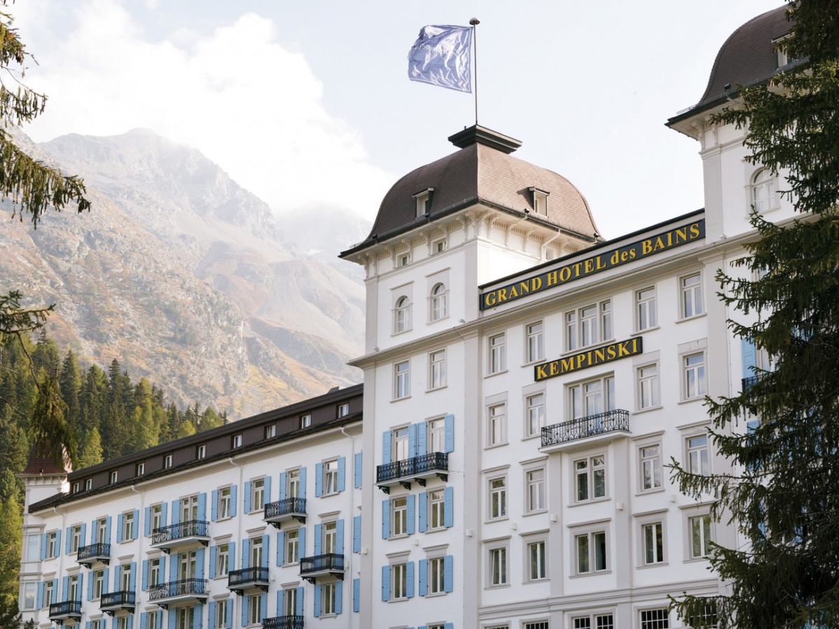 Готель розташований у серці Санкт-Моріца біля цілющого джерела. Величний будинок Kempinski Grand hotel des Bains немов казковий палац оточений засніженими альпійськими вершинами. Ще 500 років тому відомий лікар Парацельс зауважив, що джерело Mauritius і ці місця лікують недуги особливим чином. З того часу люди приїжджають не лише відпочивати в Санкт-Моріц, а й відновлювати сили завдяки лікувальним властивостям джерела. Ще однією перевагою курорту є його розташування в самому спортивному центрі Санкт-Моріца біля гірськолижних трас та підйомників на Corviglia, чим привабливий не тільки для спортсменів-професіоналів, але й для зимових видів спорту.