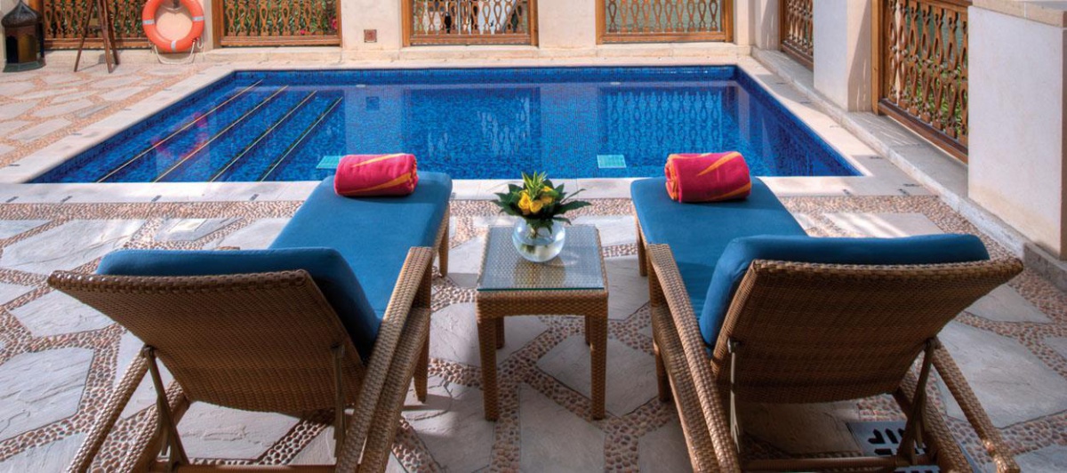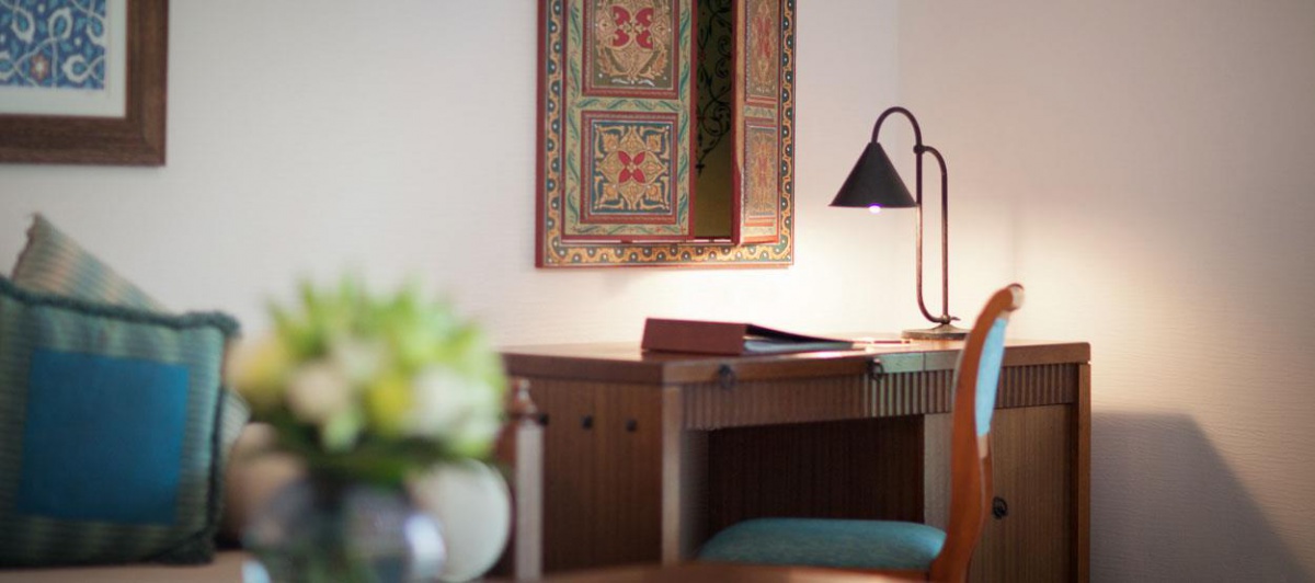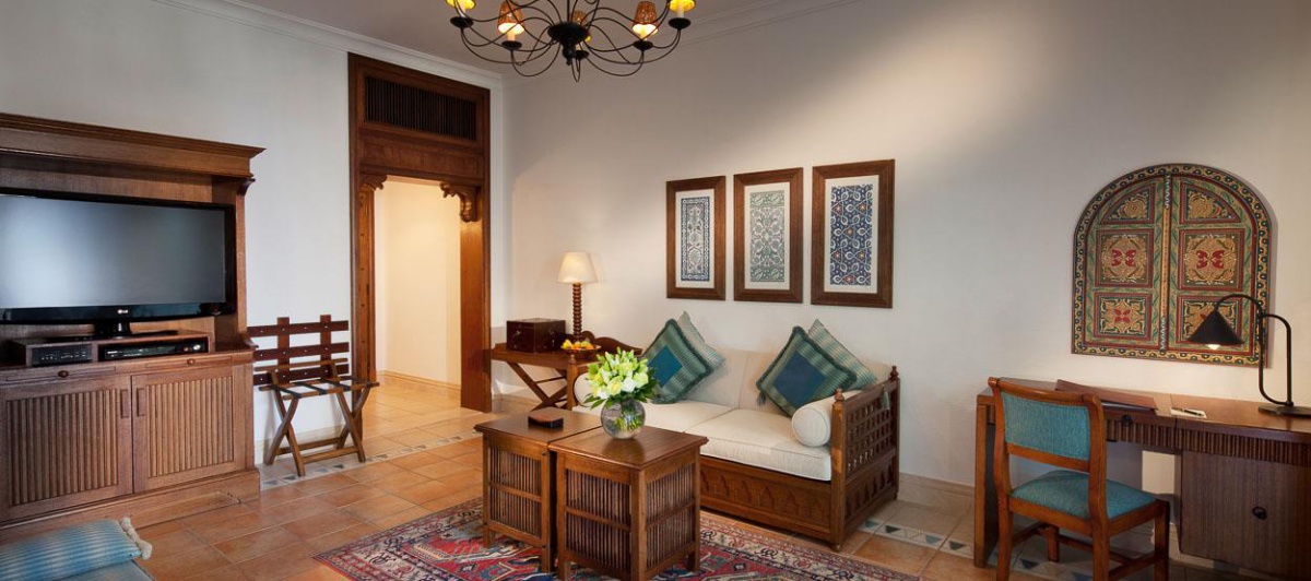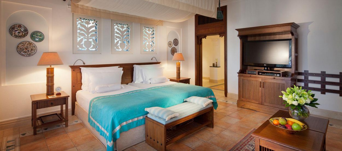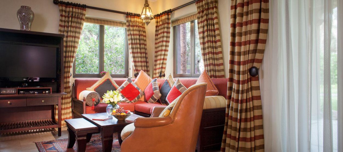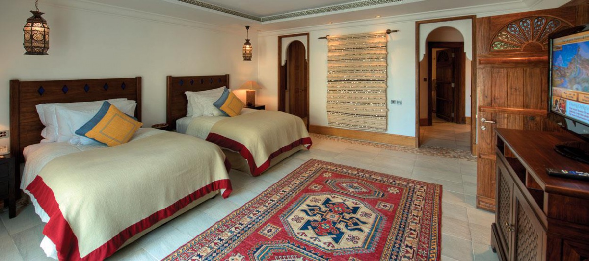 Інтер'єр номерів та вілл виконаний у традиційному арабському стилі з елементами східної розкоші, вишуканості та елегантності. Антикварні меблі з автентичними різьбленими візерунками привносять в атмосферу номерів нотки загадковості та унікальності.