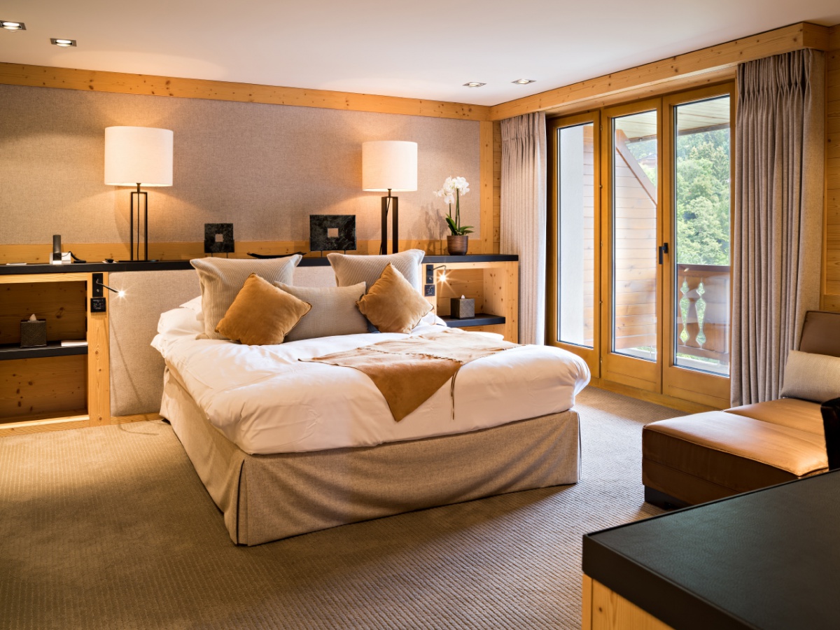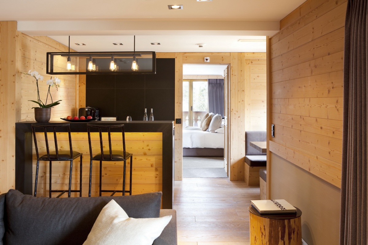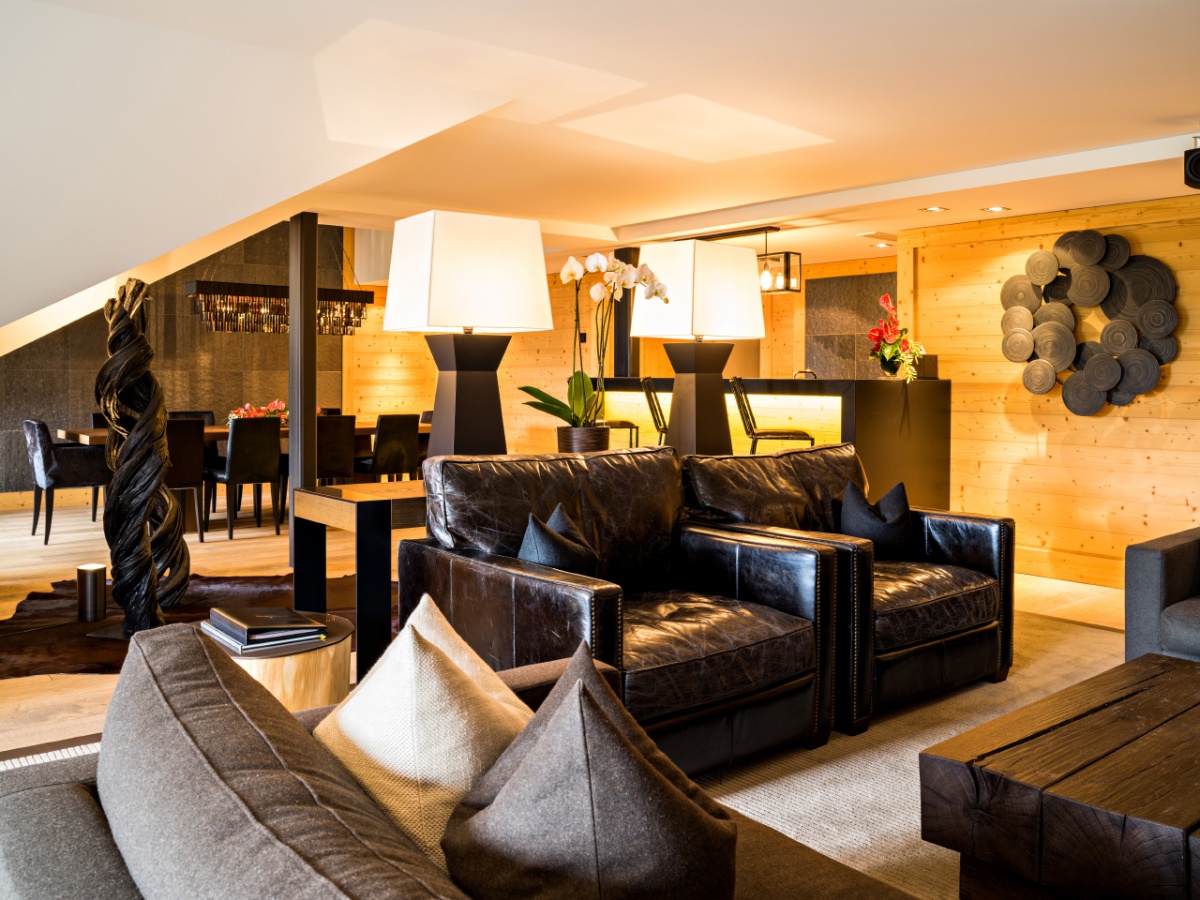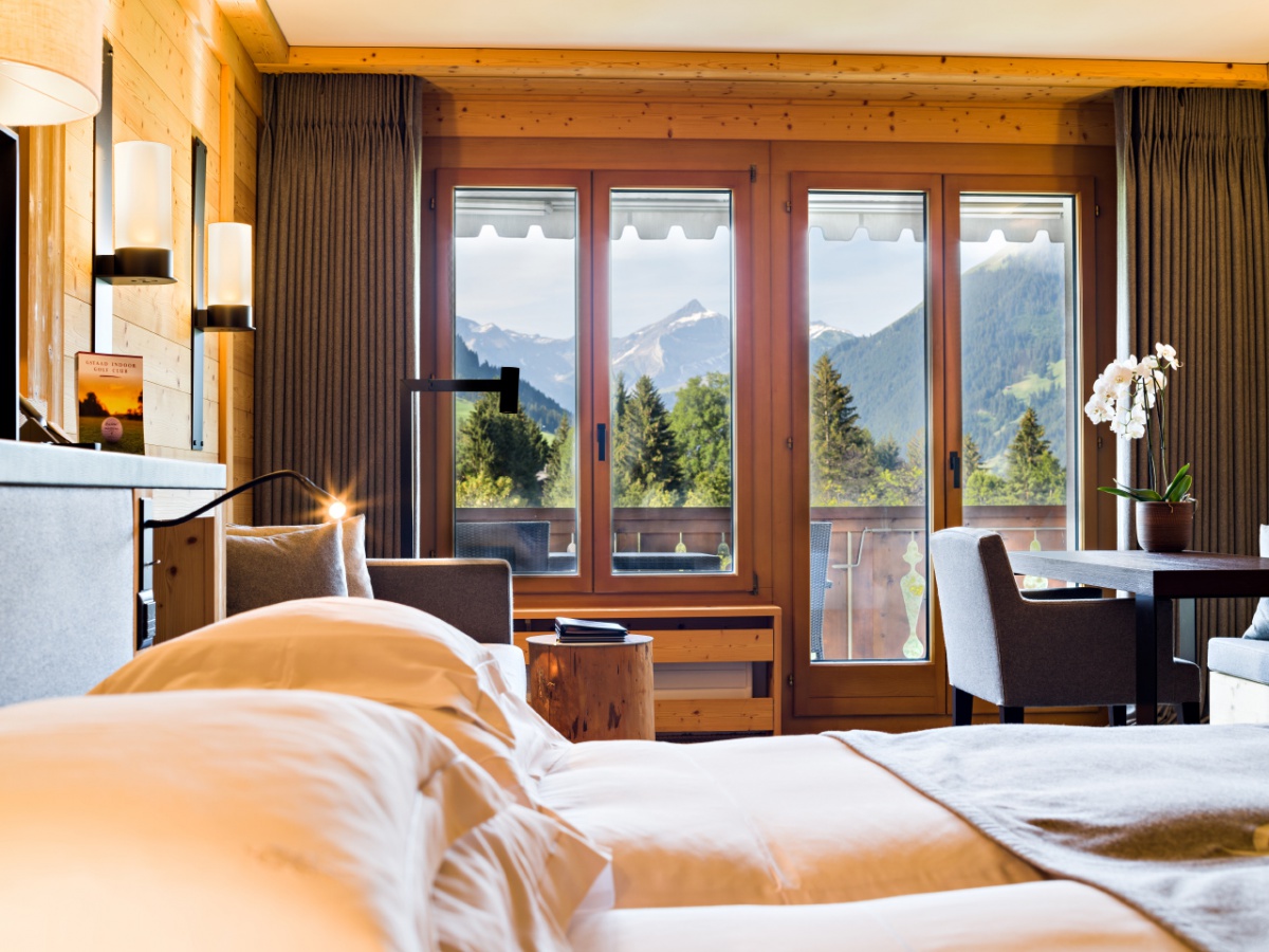 My Gstaad Chalet: 400 кв.м. Розкішний номер, розташований на двох верхніх поверхах готелю, складається з 4 спалень, вітальні з каміном, їдальні, кухні, ванних кімнат, персонального СПА з сауною, парною, джакузі та масажною зоною, балкона з видом на гори. Гостям номера надаються послуги персонального дворецького.