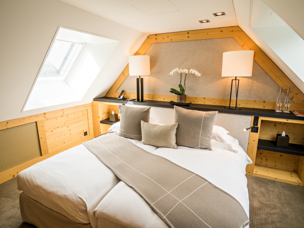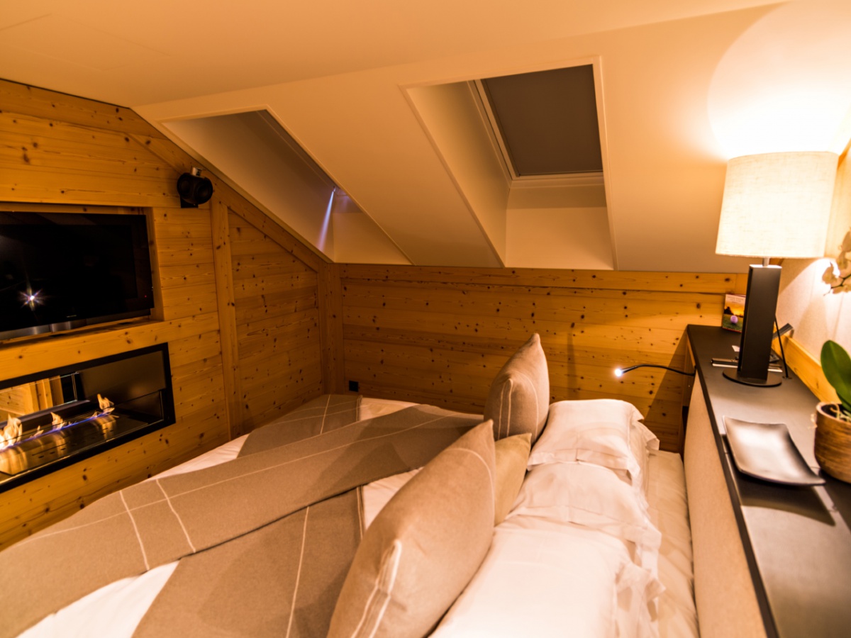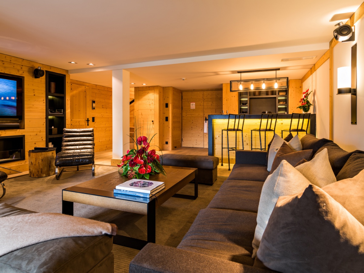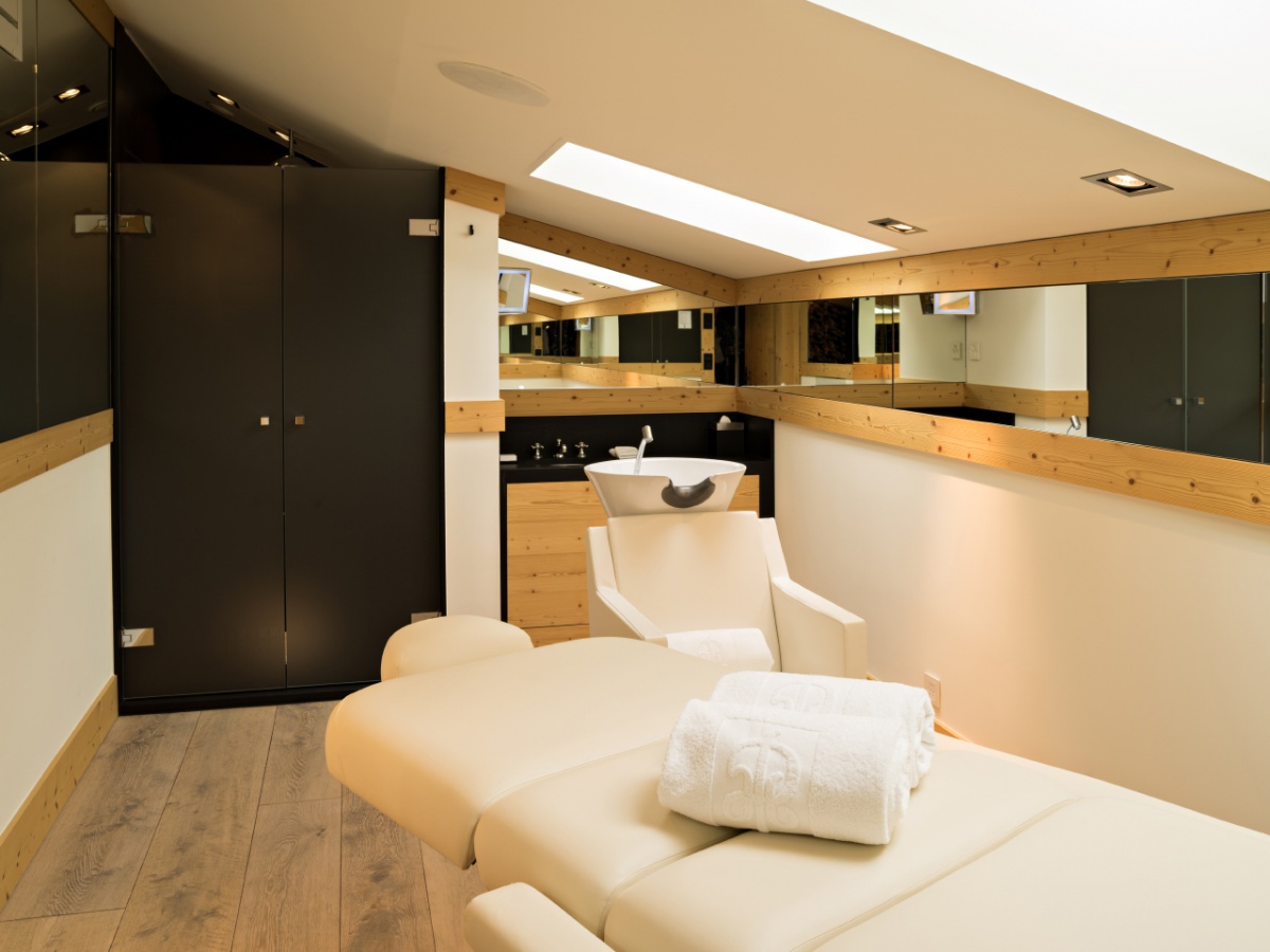 My Gstaad Chalet: 400 кв.м. Розкішний номер, розташований на двох верхніх поверхах готелю, складається з 4 спалень, вітальні з каміном, їдальні, кухні, ванних кімнат, персонального СПА з сауною, парною, джакузі та масажною зоною, балкона з видом на гори. Гостям номера надаються послуги персонального дворецького.