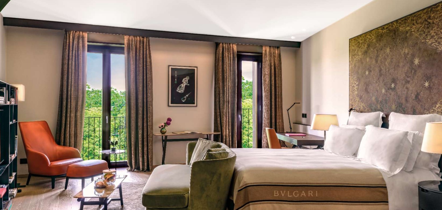 Напівлюкси характеризуються привабливим входом, який веде до великої кімнати, просторої зони відпочинку, закритої вікнами від підлоги до стелі. Меблі та декор створюють вишукану, але привітну атмосферу, вираження постійної уваги до деталей, якою славиться Bvlgari. Люкси можуть бути об’єднані в номер Делюкс із зручним двоспальним ліжком розміру "king-size" або 2 односпальними ліжками та виходом на окремий поверх. 65 кв.м.