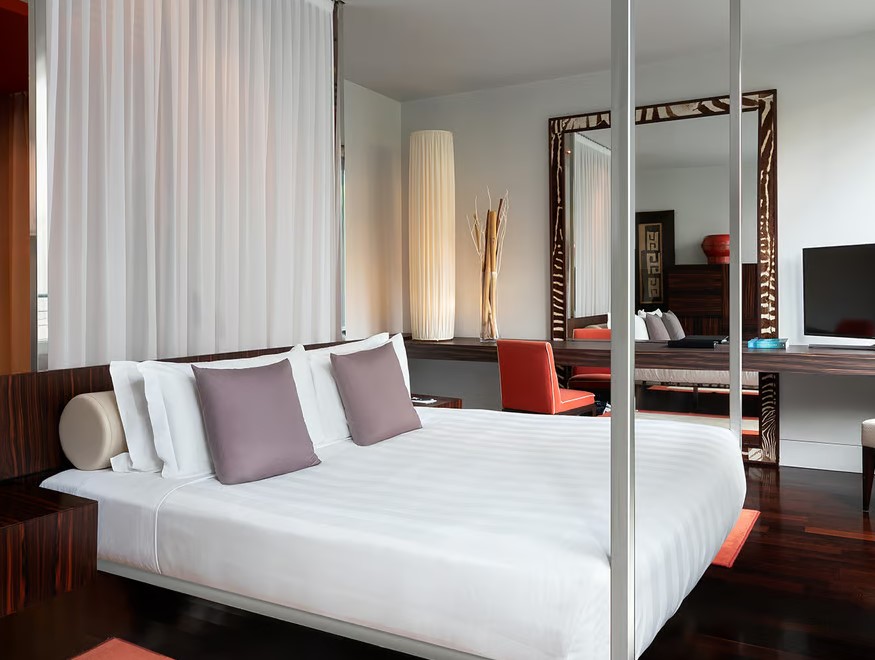 Кожен номер обставлений унікальними декоративними елементами. Сталь, скло, етнічне дерево, шовк і живі анімалістичні принти включені у вишуканий дизайн.